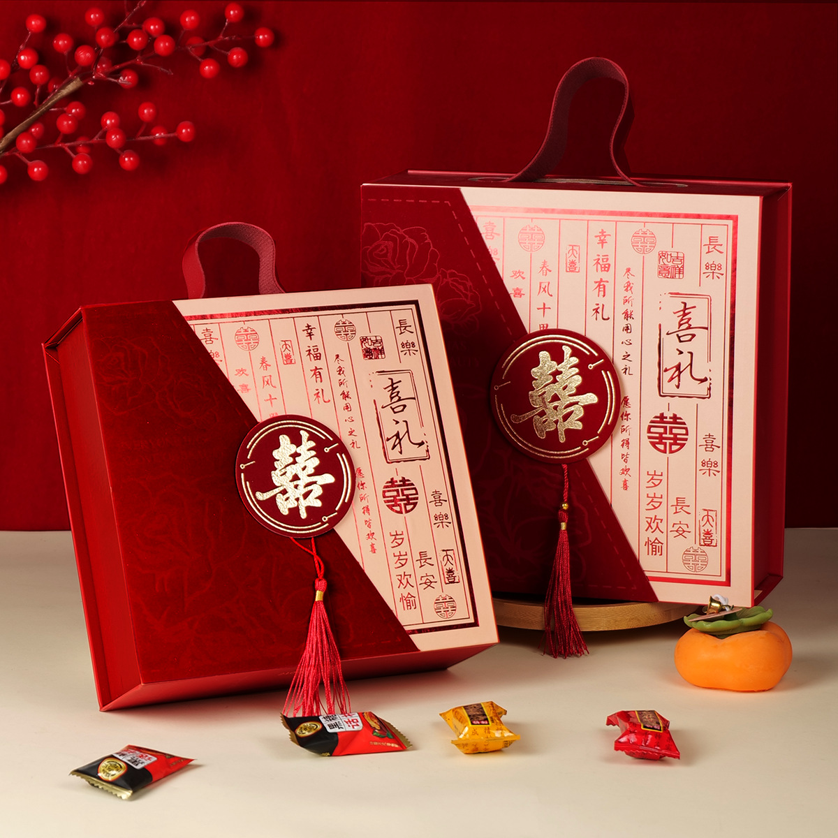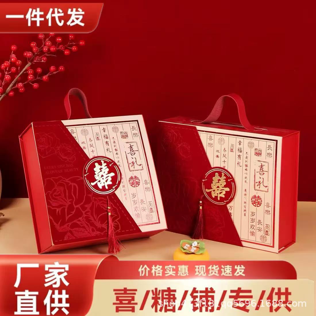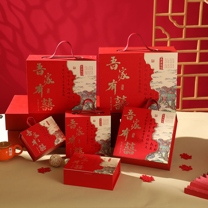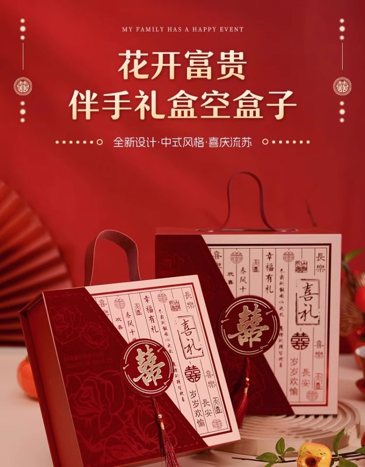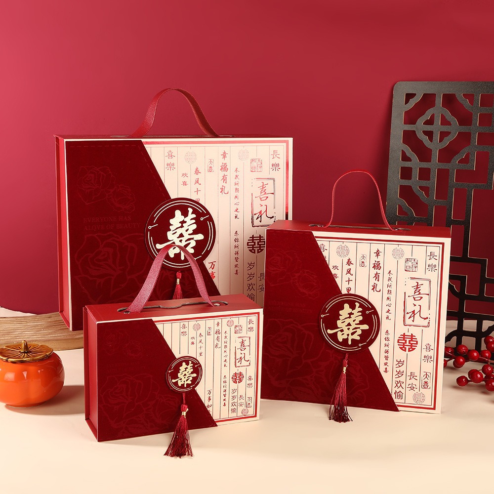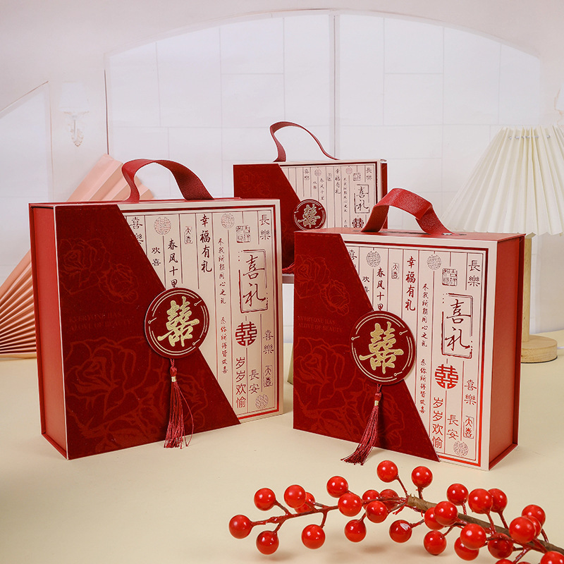 新中国式レトロおめでたい結婚祝い砂糖のお土産箱国潮古典手提げギフトボックス空箱花嫁のお土産