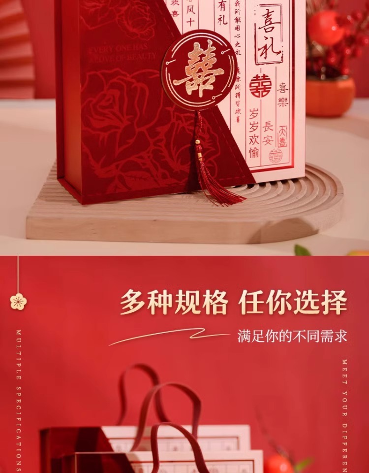 新款免折叠伴手礼盒中式结婚订婚喜糖盒满月周岁回礼礼盒批发