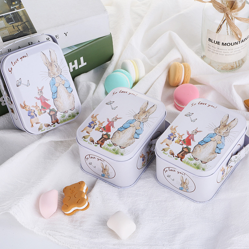 新しい結婚式のキャンディーボックス卸売手持ち瓶ギフトボックス復活ウサギブリキの箱白ウサギのキャンディーボックス包装箱