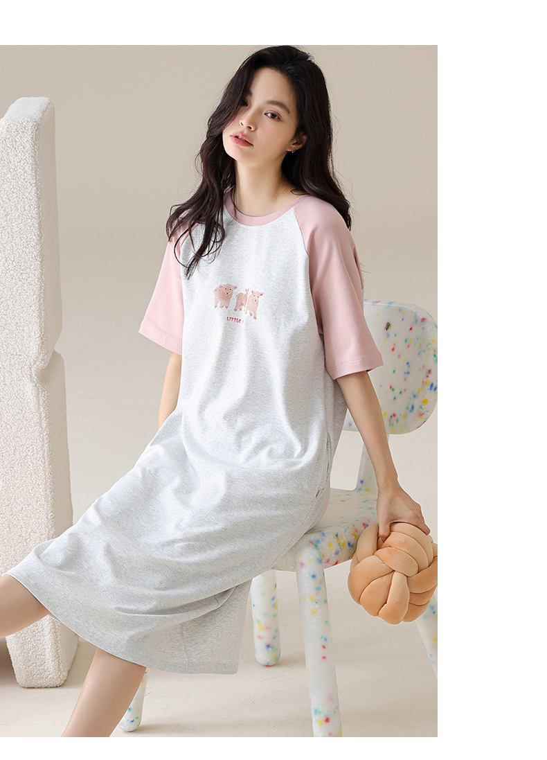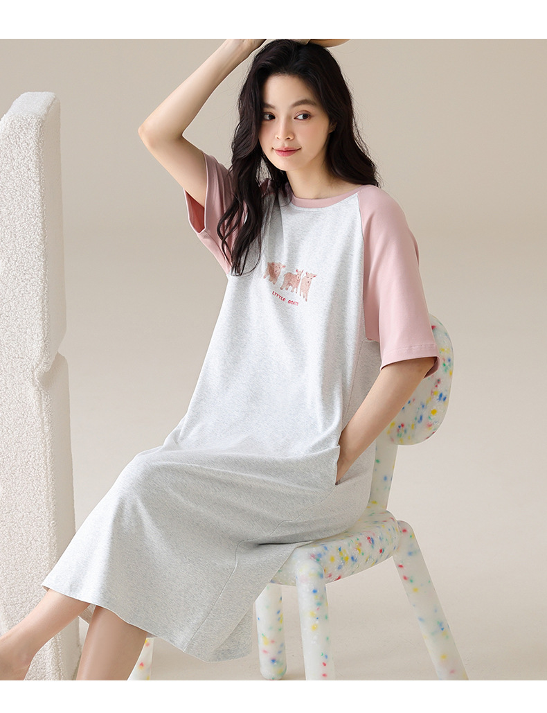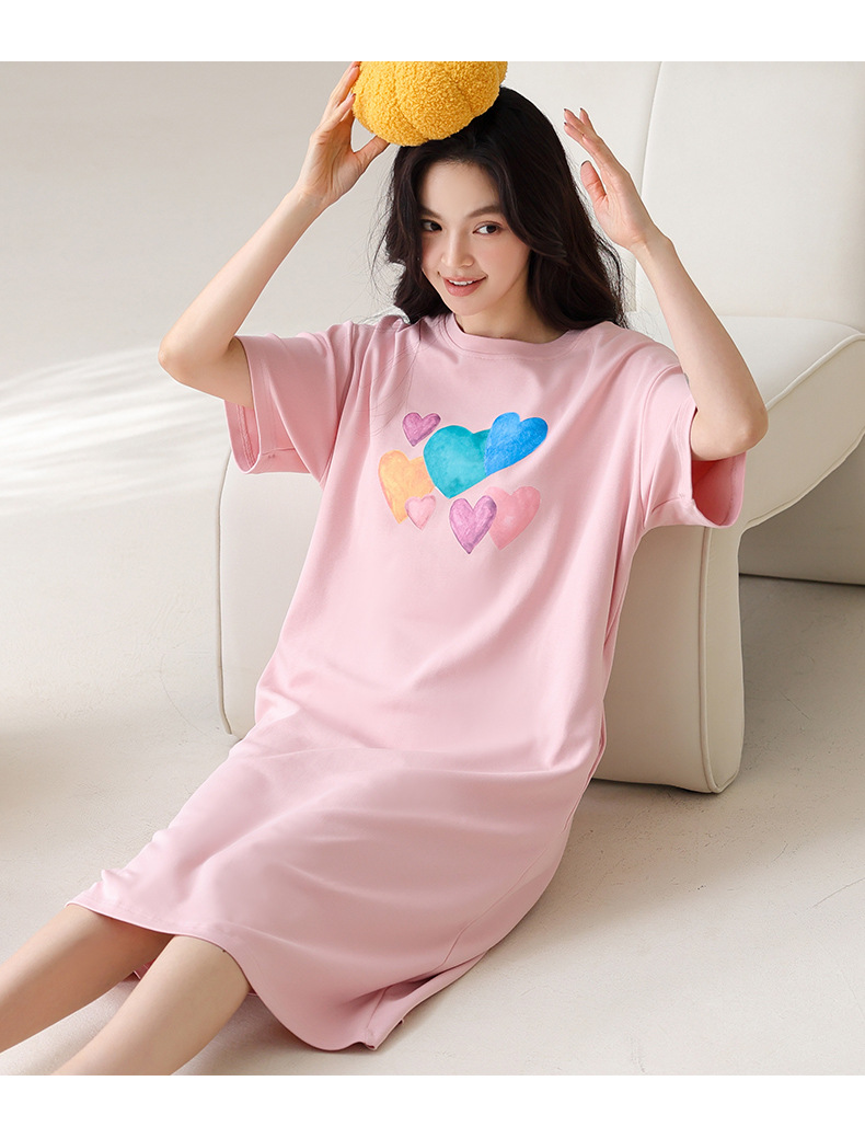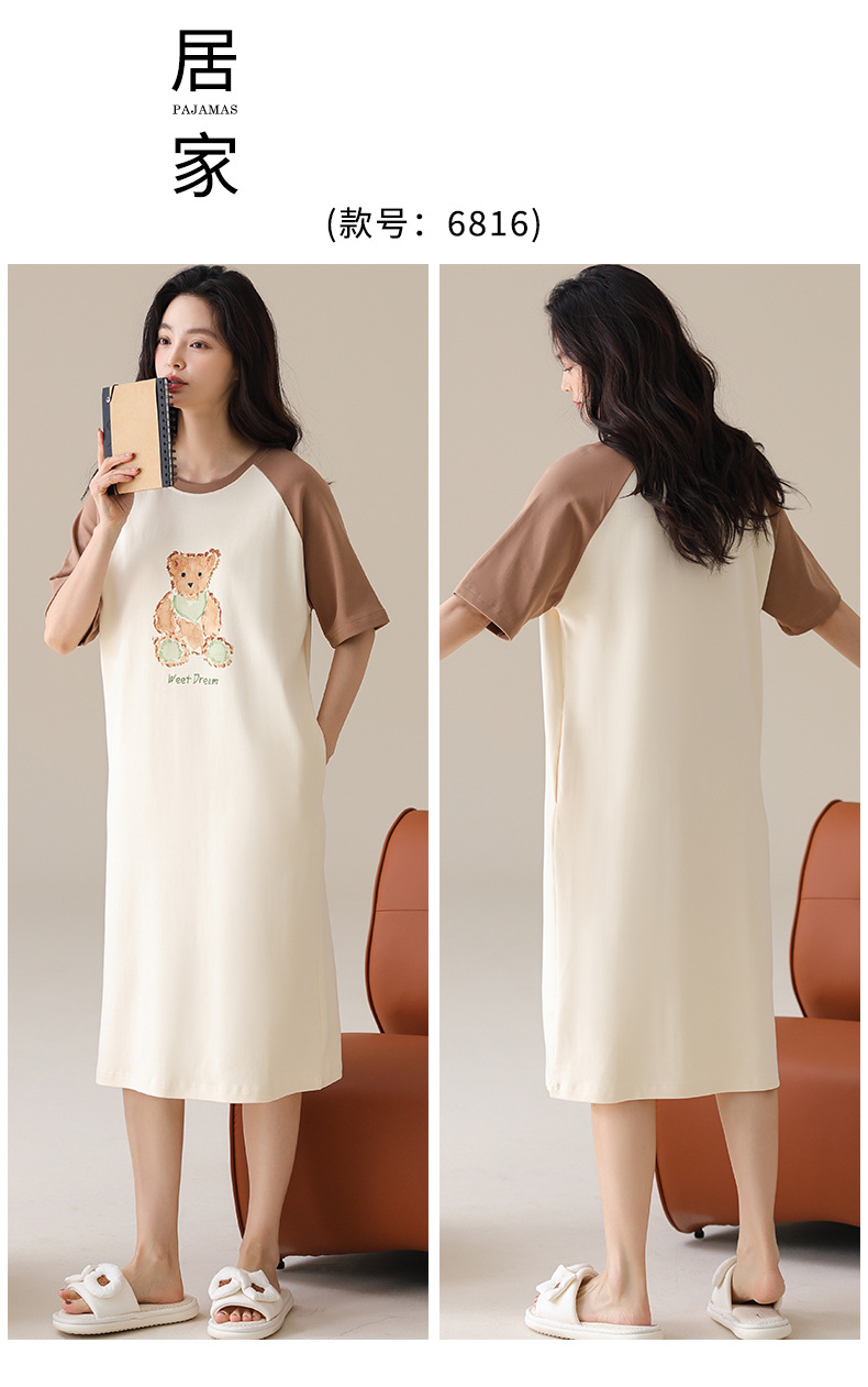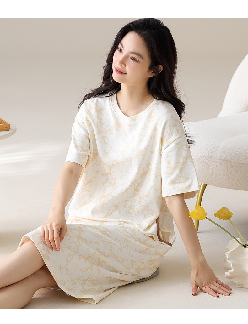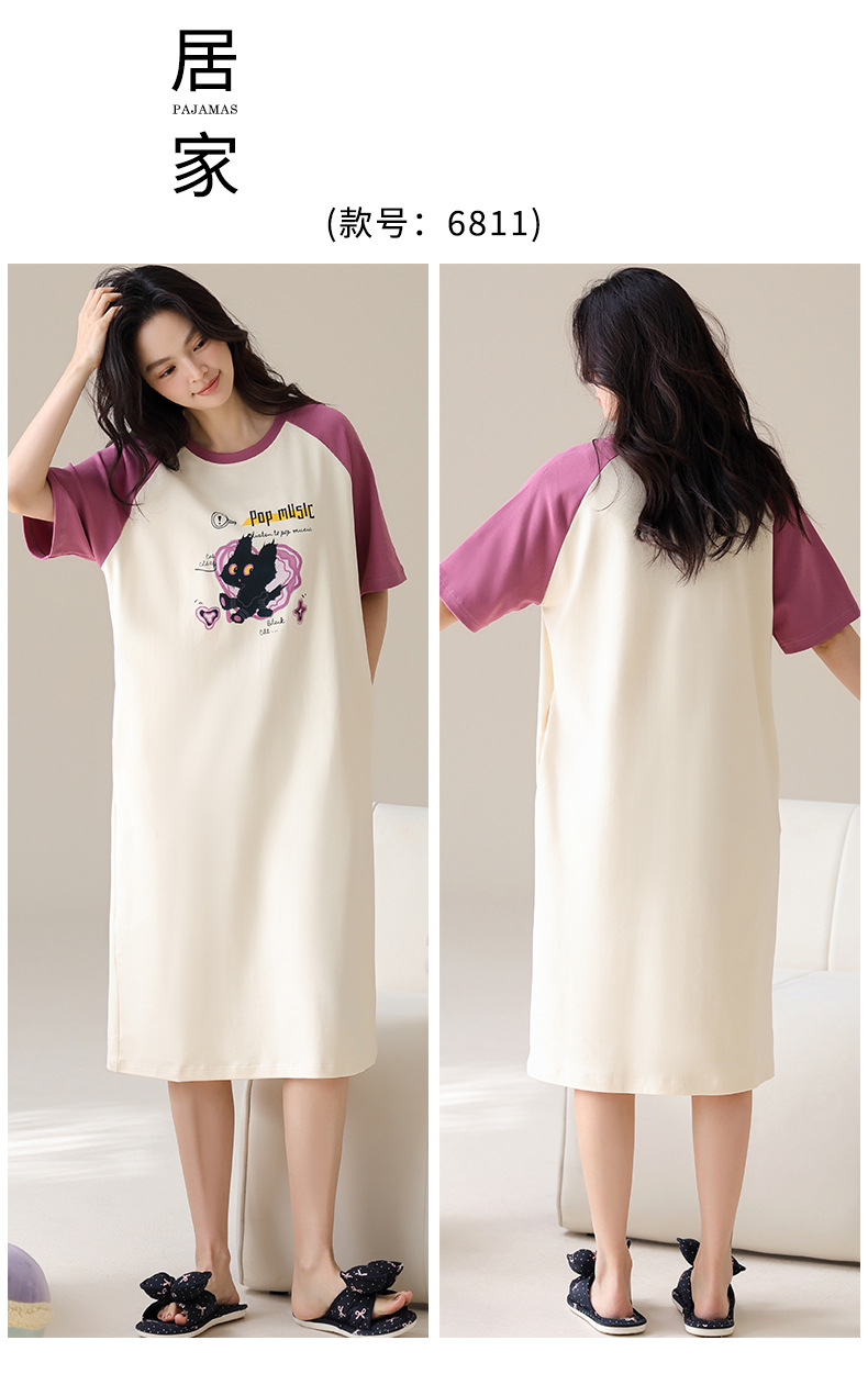寝ているスカートの女性の夏のモーデル綿の半袖パジャマのスカートの夏の薄いタイプの涼しさの中の長い家庭服のワンピース