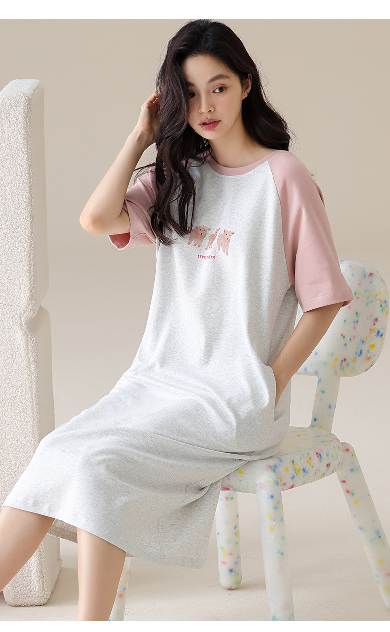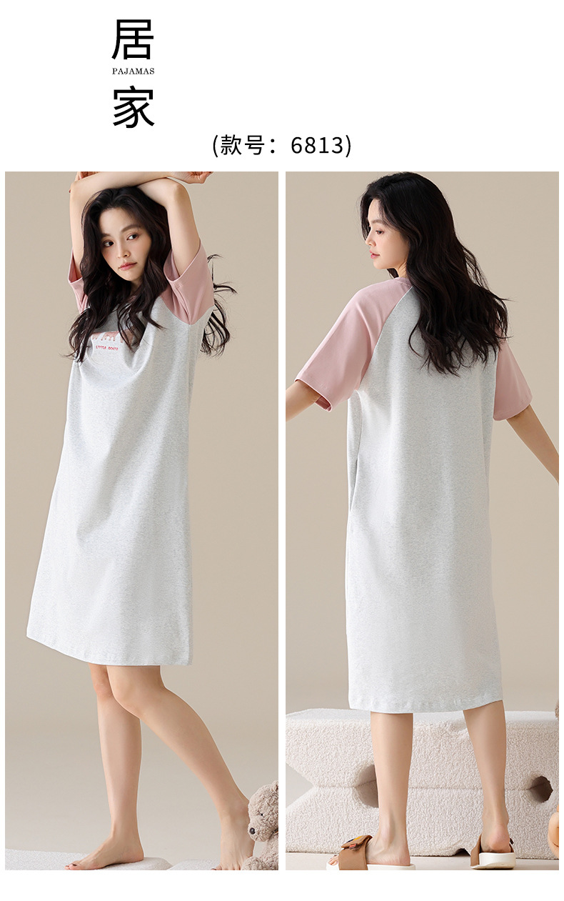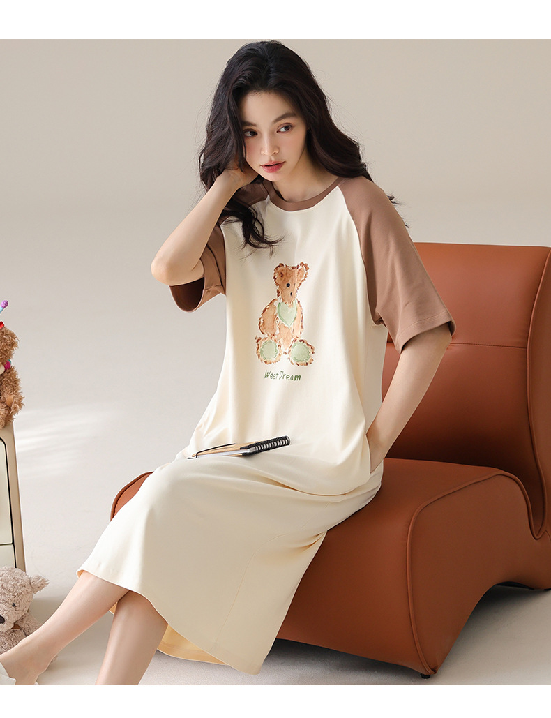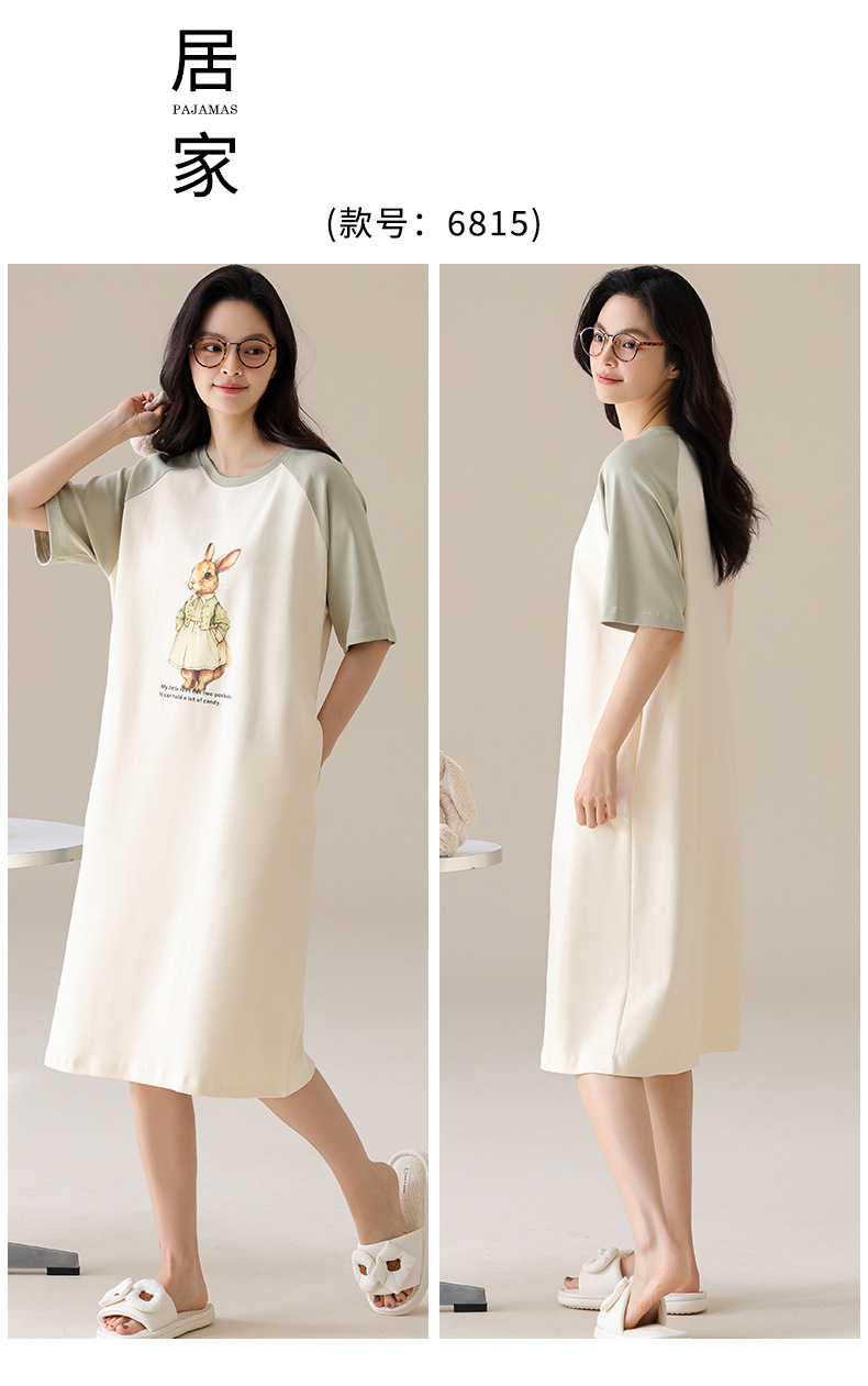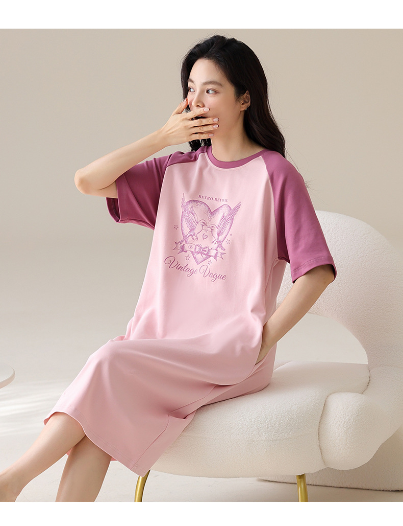 寝ているスカートの女性の夏のモーデル綿の半袖パジャマのスカートの夏の薄いタイプの涼しさの中の長い家庭服のワンピース