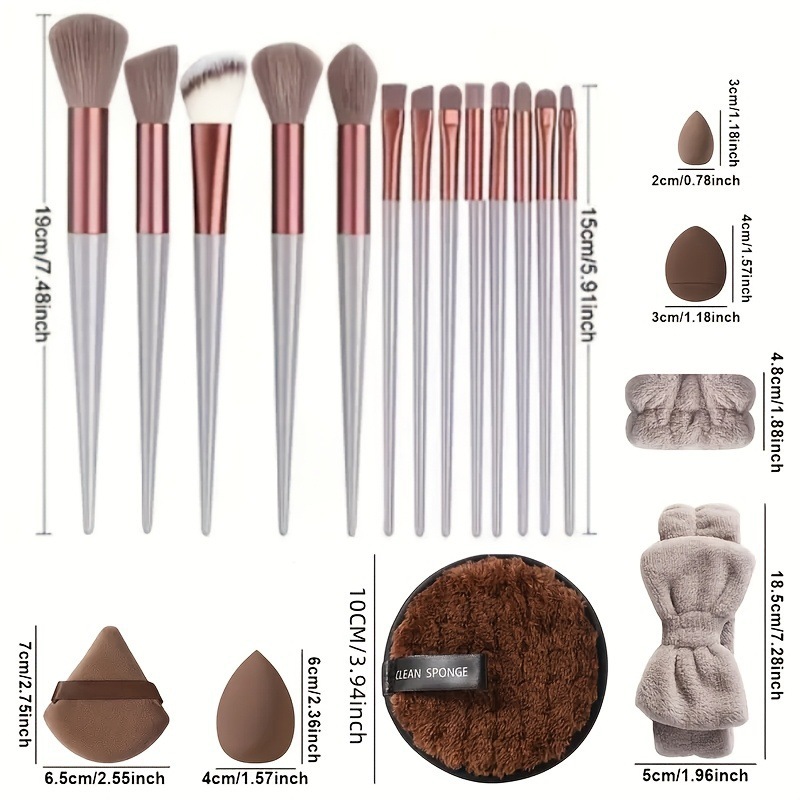 跨境热卖化妆套装20件组合美妆工具珊瑚绒三角拇指粉扑美妆蛋套装