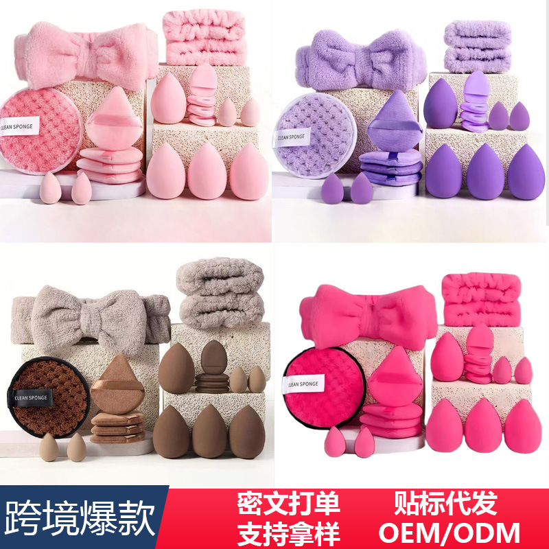 跨境热销粉扑套装20PC 33PC美妆工具大组合套装洗脸化妆粉扑全套