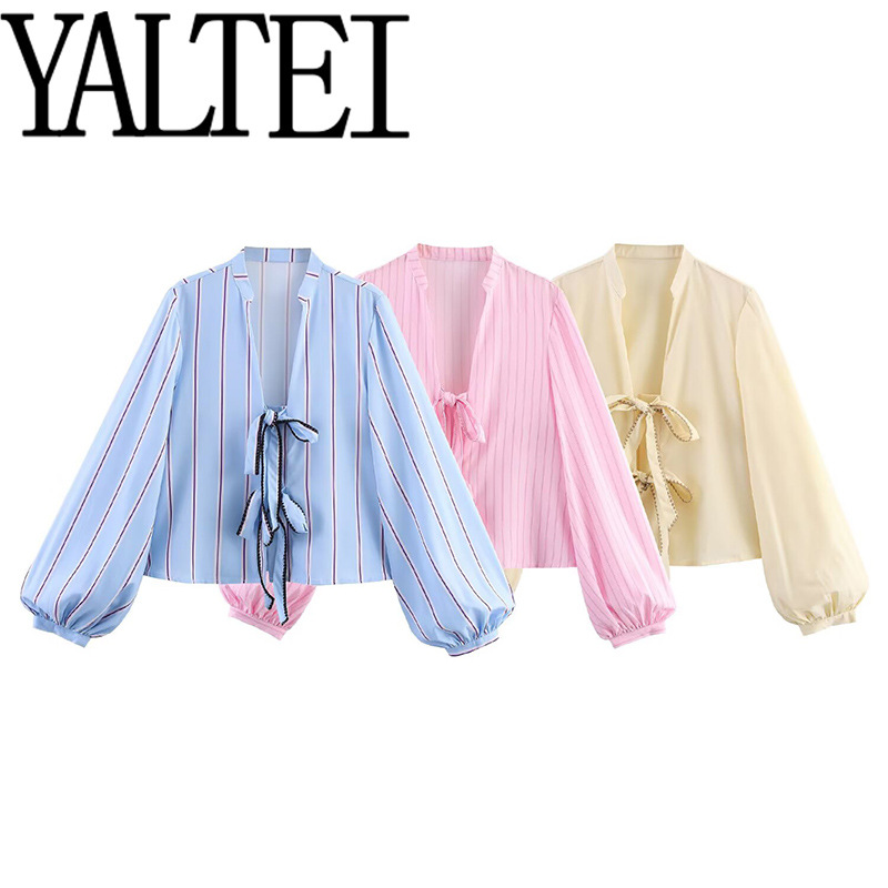 ZAR 春季新款女装欧美风法式时尚3色系带蝴蝶结饰休闲长袖衬衫