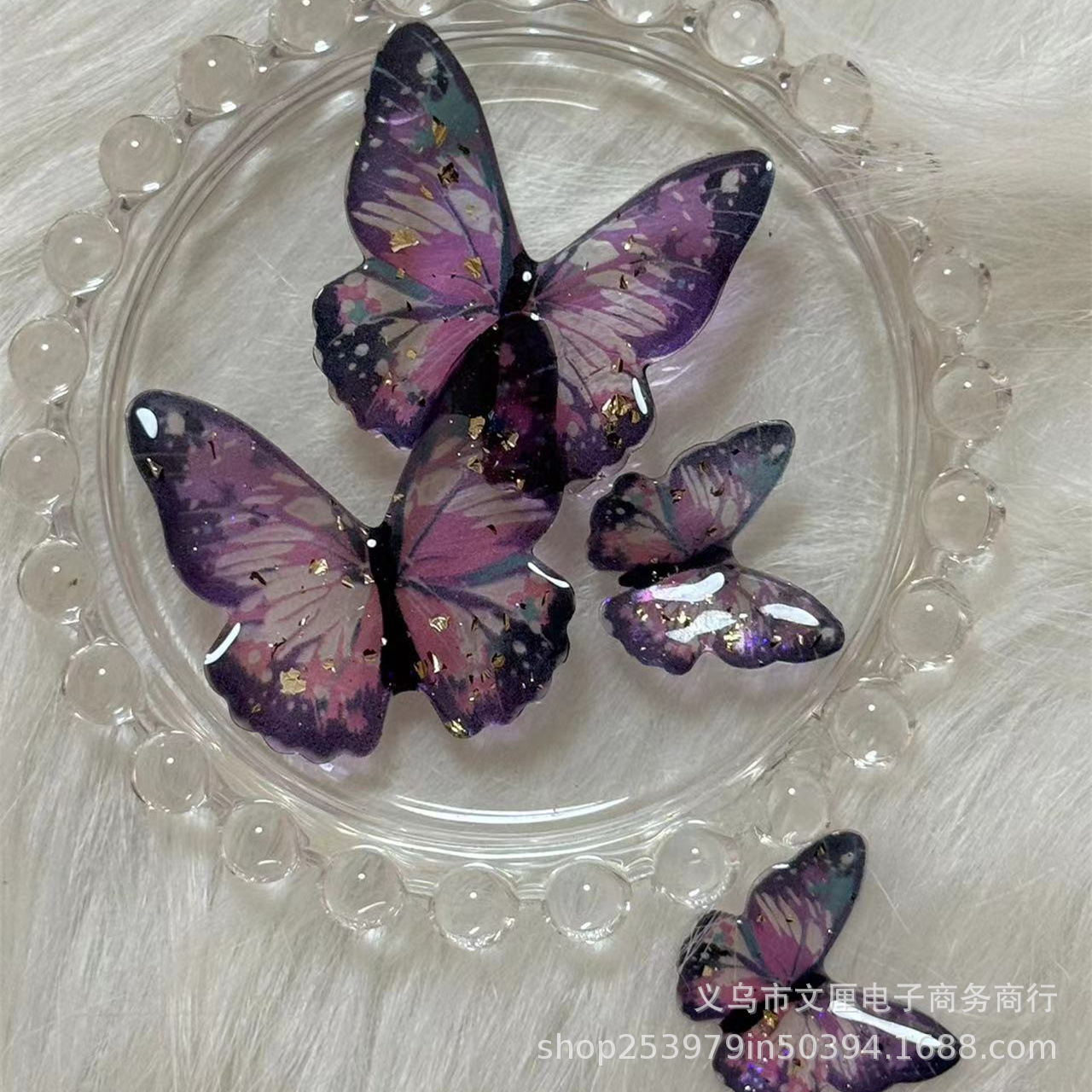 紫金箔立体蝶滴ゴムdiy髪飾り服装装飾品工場卸売りスポット直販