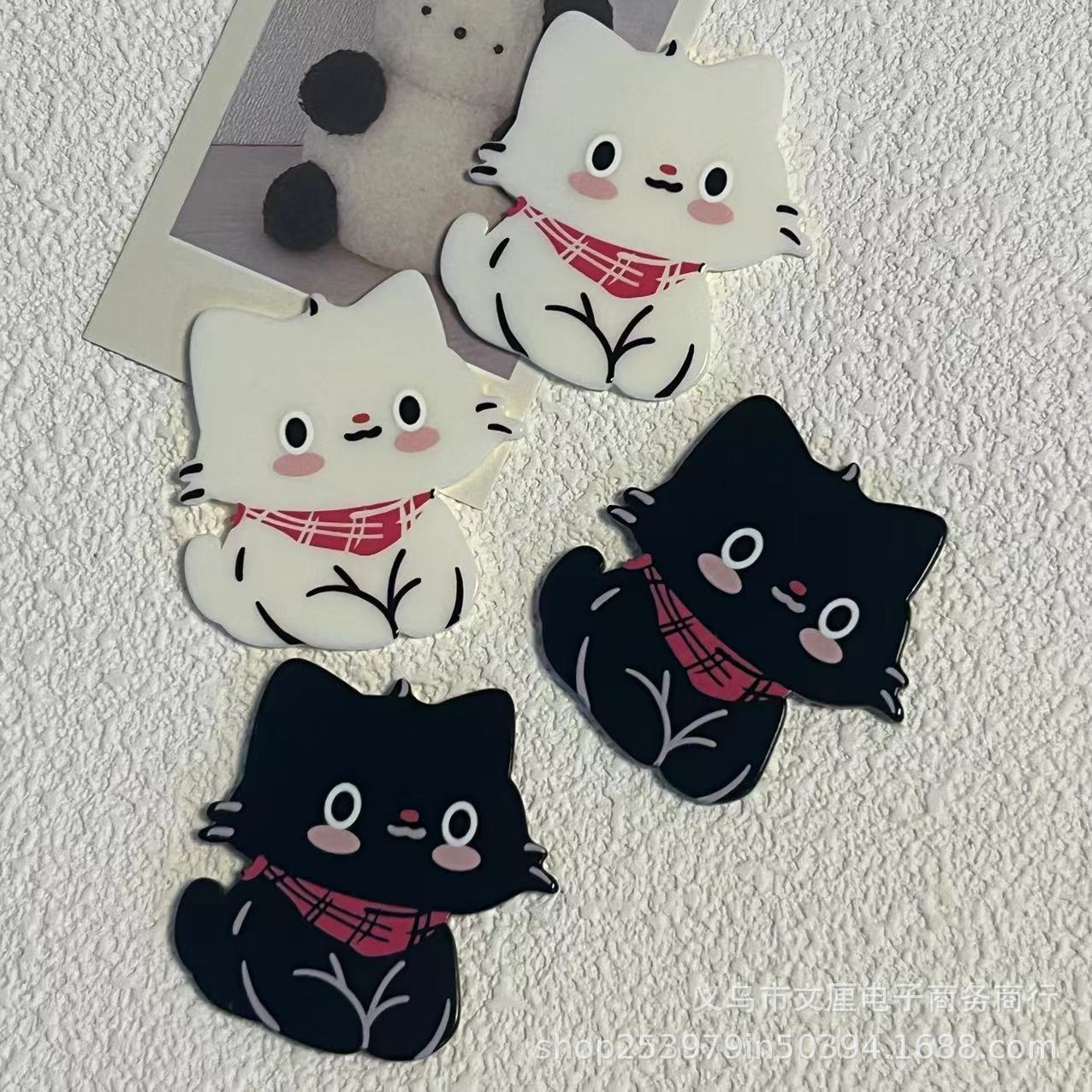 新しい赤いマフラーの子猫のステッカーカードの43mmの平底のアクリルのヘアピンの髪飾りのキーホルダーの設計材料