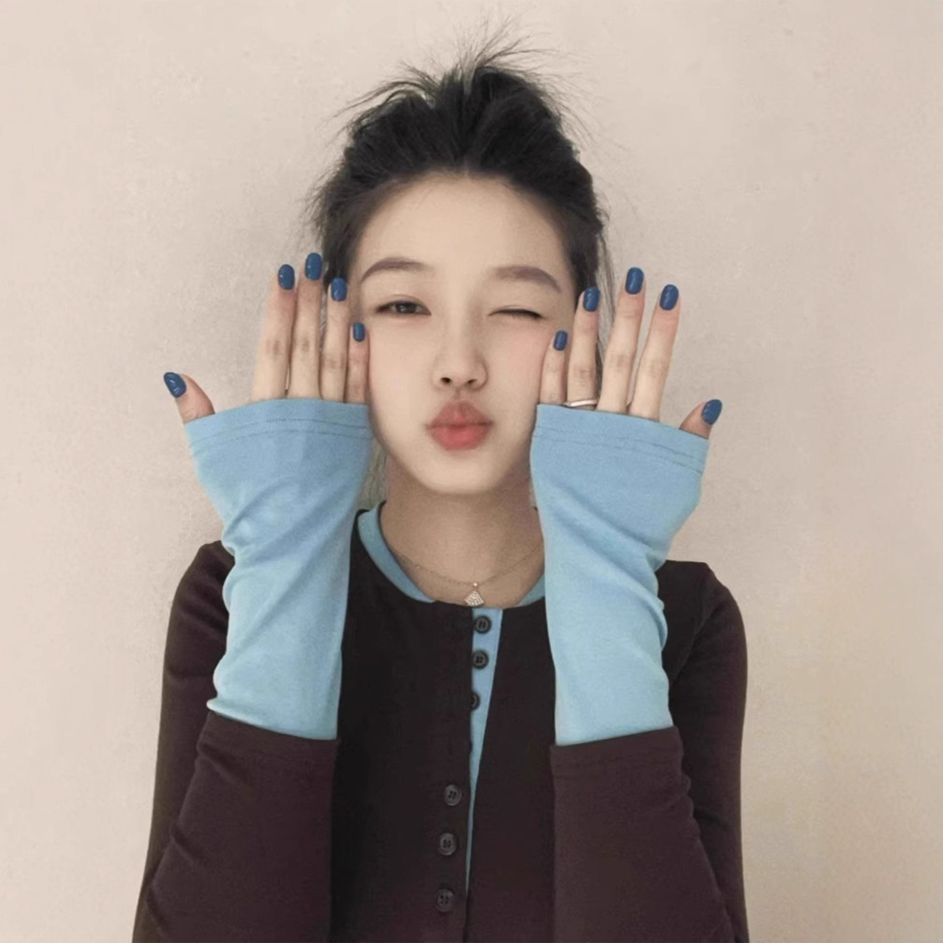 韩系早秋穿搭假两件长袖t恤女装2025新款内搭打底衫半开领上衣
