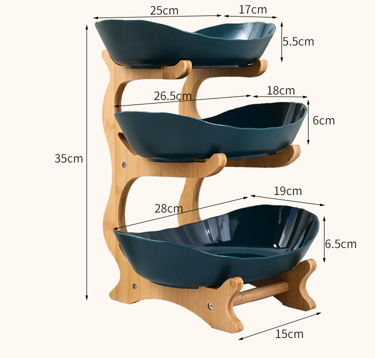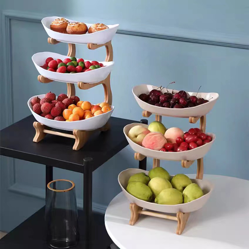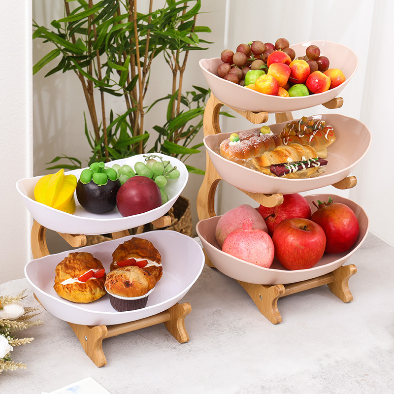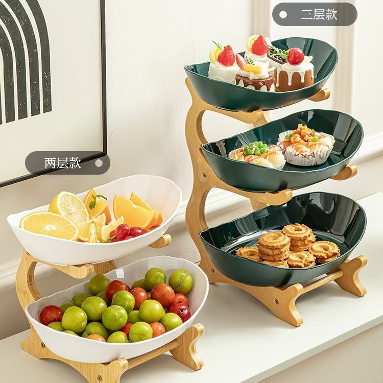 跨境专供家用客厅水果盘糖果水果盘三层双层塑料竹木架水果盘零食