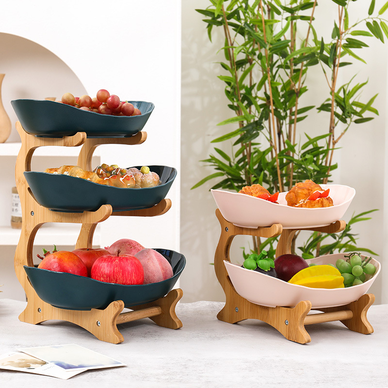 創意家庭用竹木棚三層果物皿ヨーロッパ式多層ドライフルーツ皿軽豪華スナック皿キャンディパレットバスケット