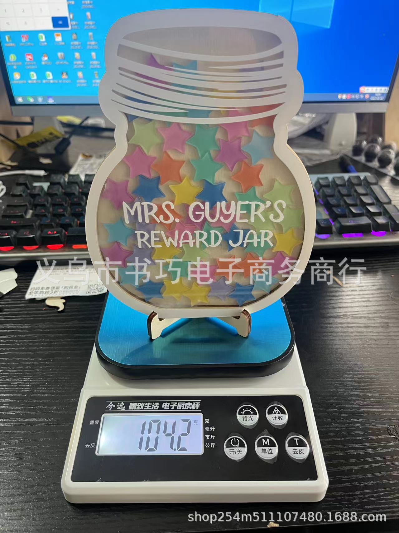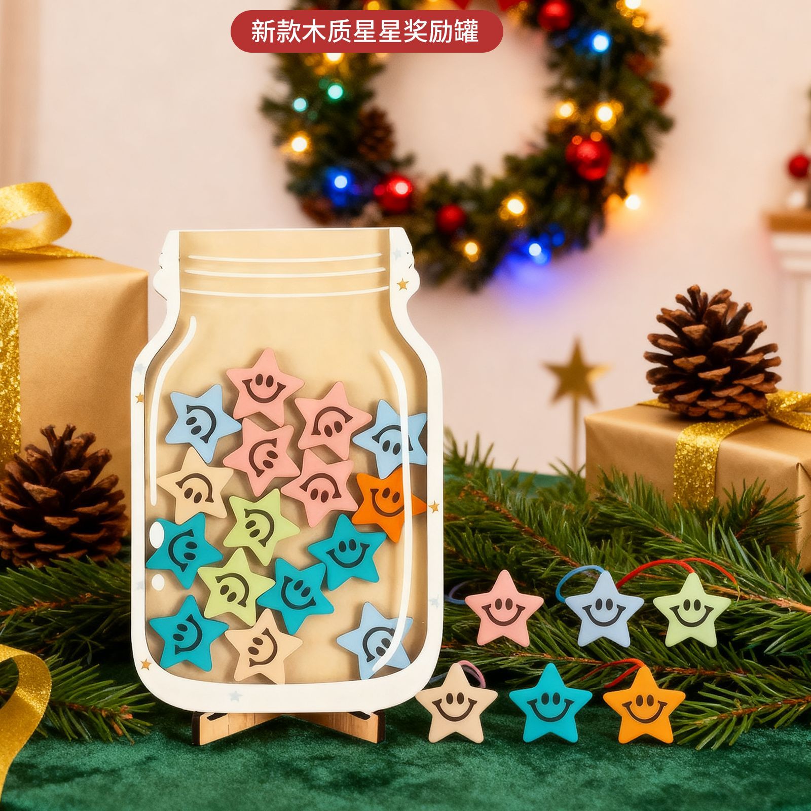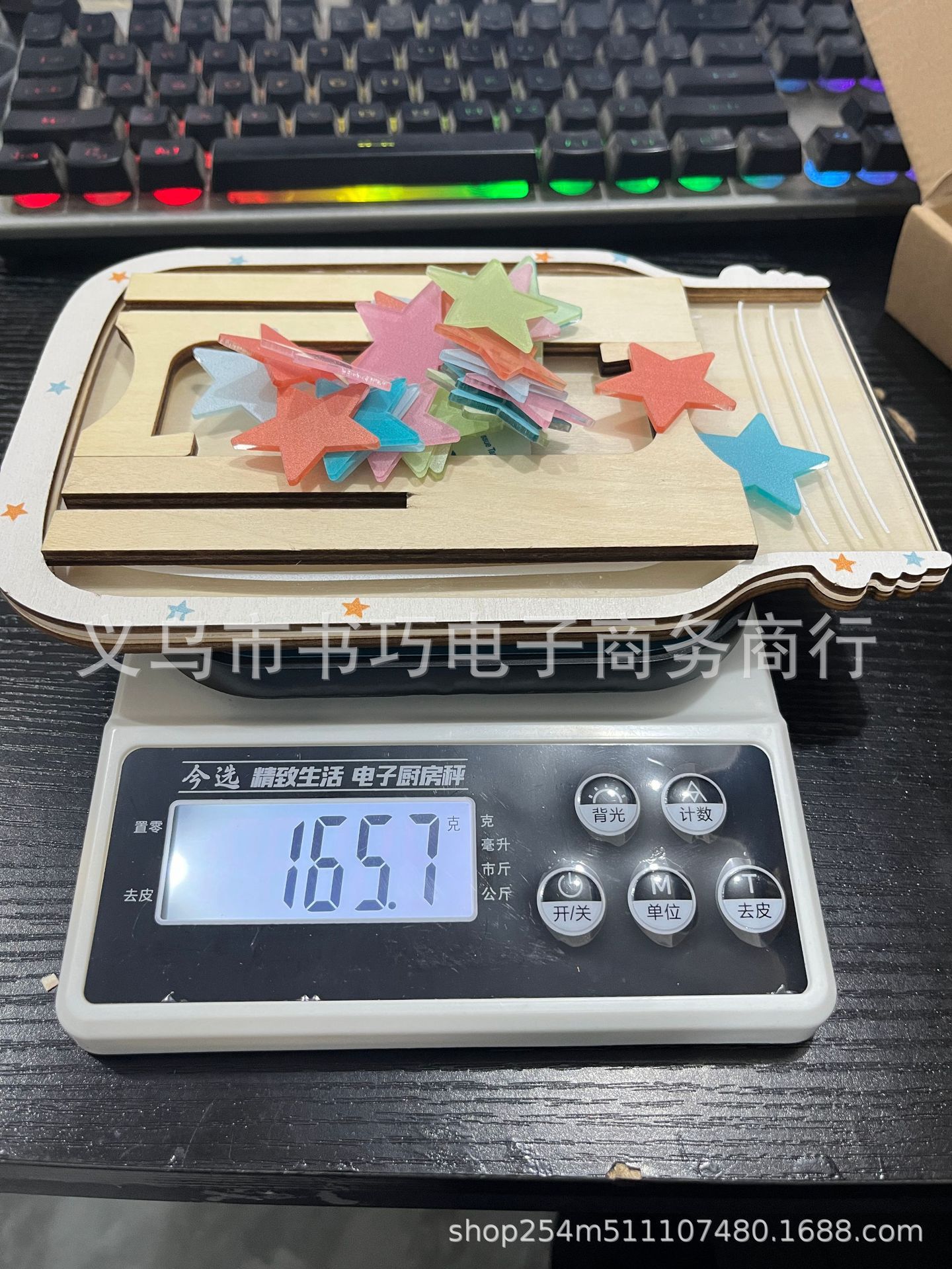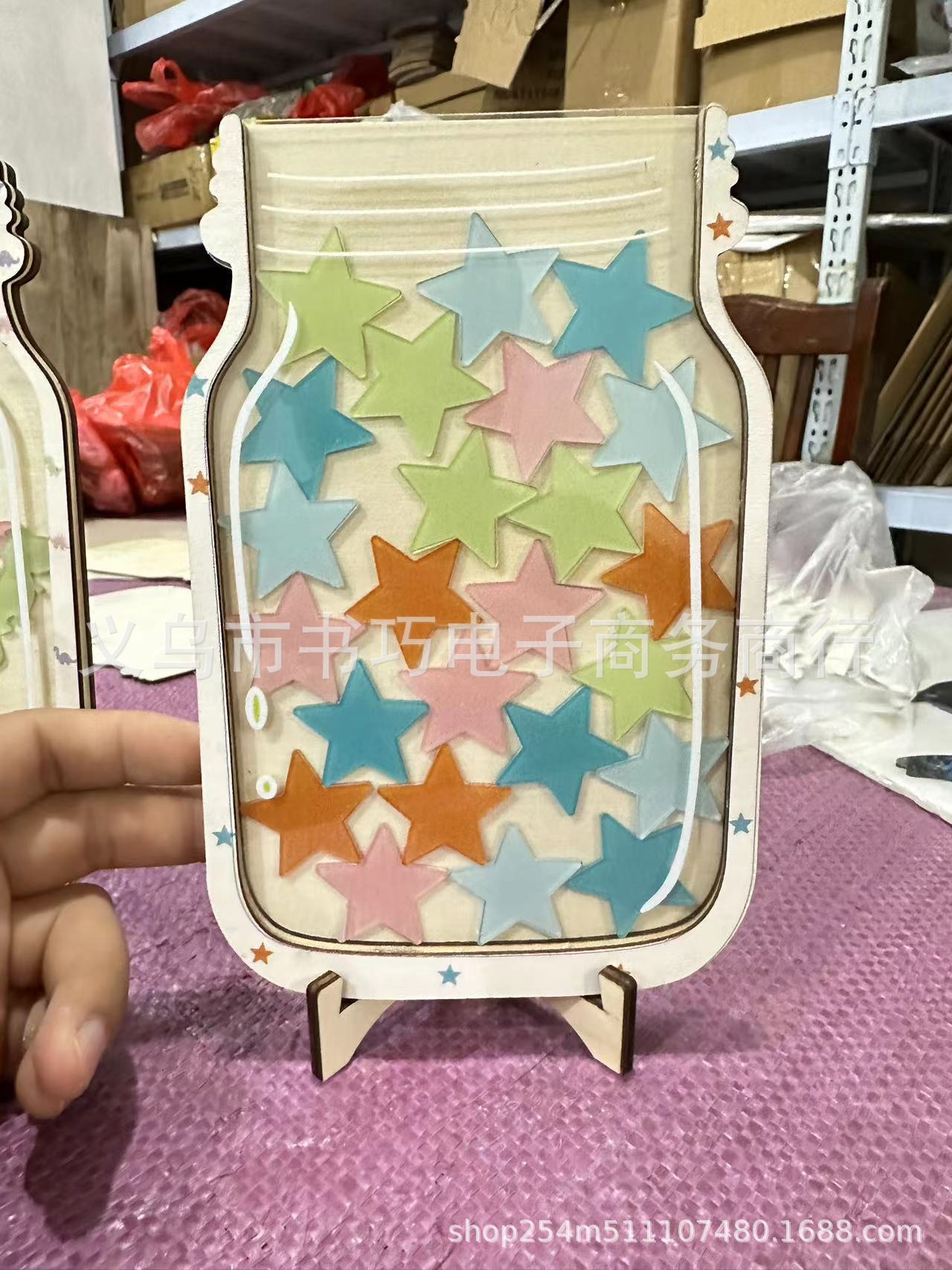 产品配25个小星星/动物,5款颜色每款颜色5个,配一套支架,加一片磁片
