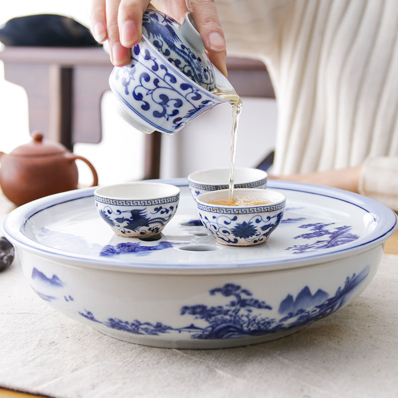 陶磁器茶皿トレー円形家庭用シンプル茶台青花磁器潮汕工夫茶器貯水小茶皿茶トレー