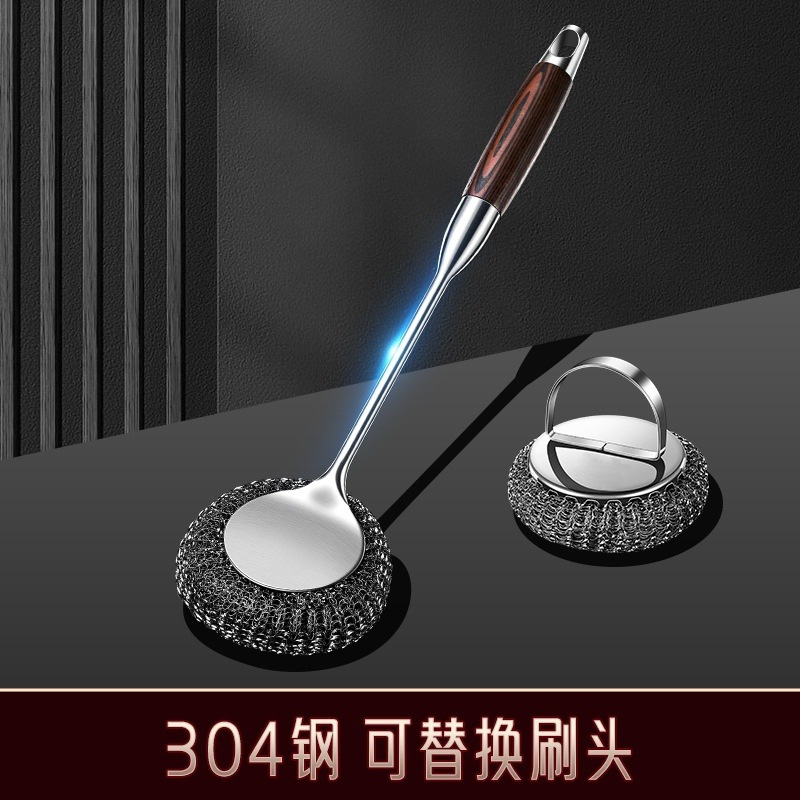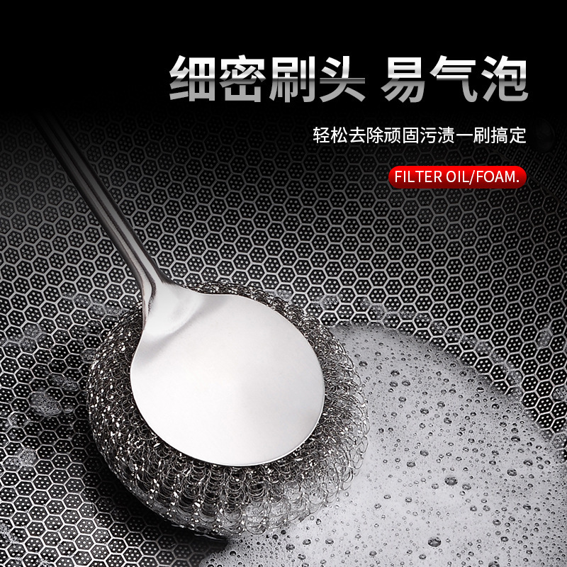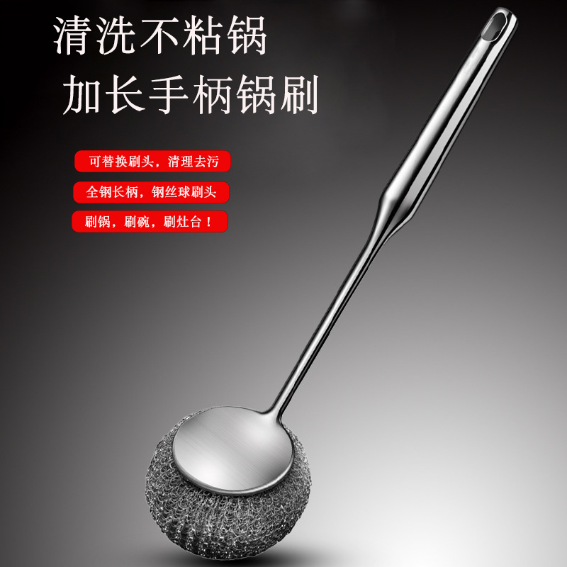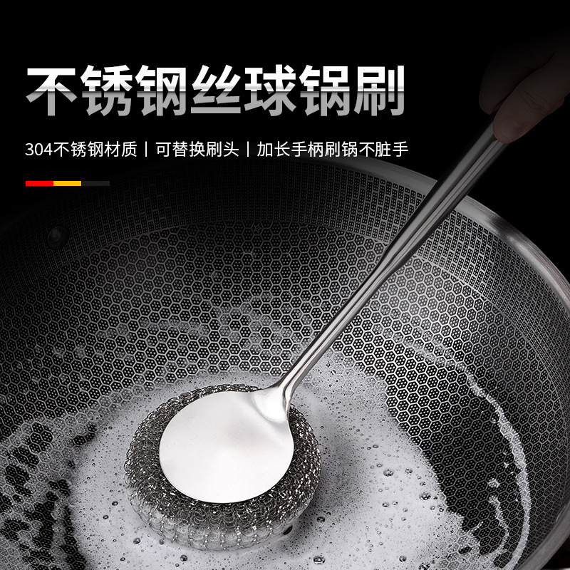 メーカー卸売り304ステンレス鍋ブラシキッチン専用長柄ブラシ鍋神器家庭用洗浄鍋ワイヤーボールブラシ