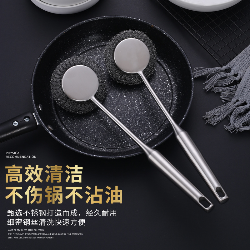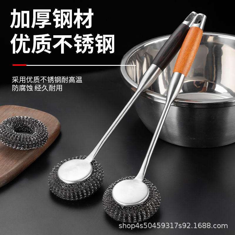 ステンレス鋼家庭用キッチンロングハンドルポットブラシ食器洗いクリーニングブラシ大型スチールワイヤーボールアーティファクト卸売家庭用家具