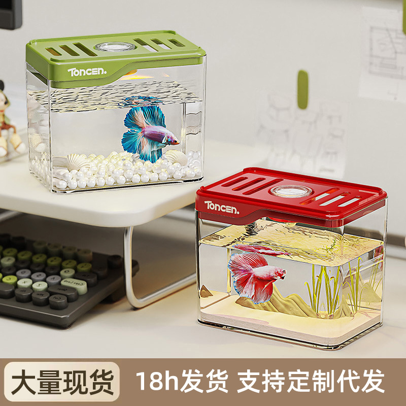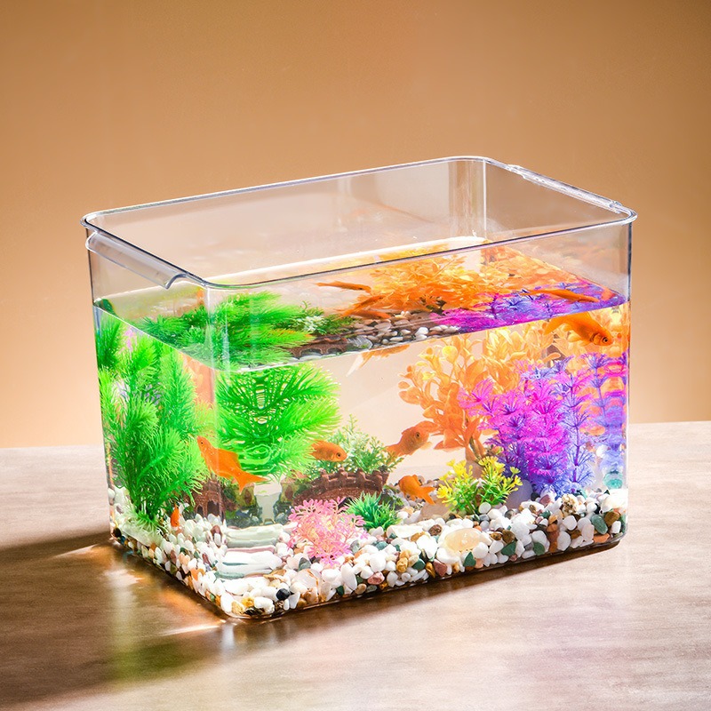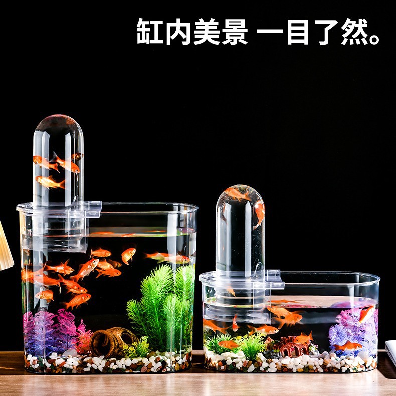 書斎オフィスデスク楕円形水槽リビングルーム小型家庭用透明プラスチック卸売金魚造園生態水槽