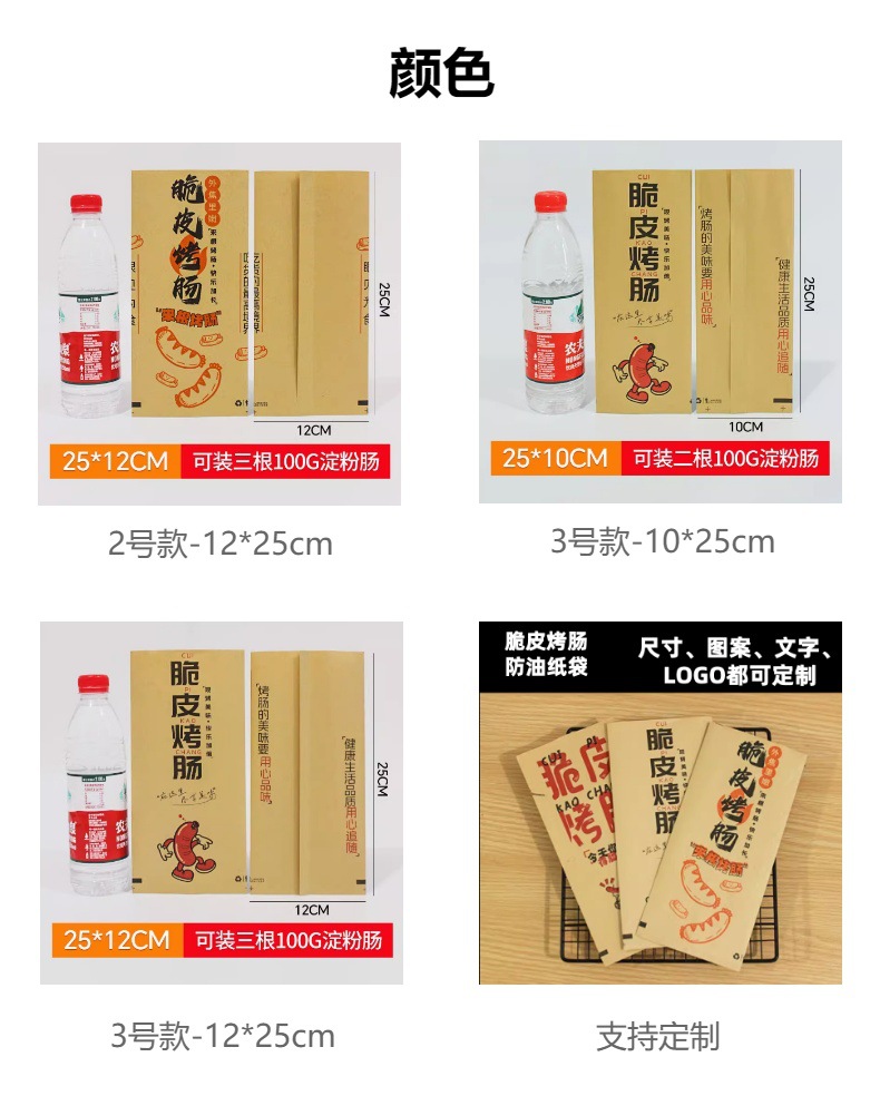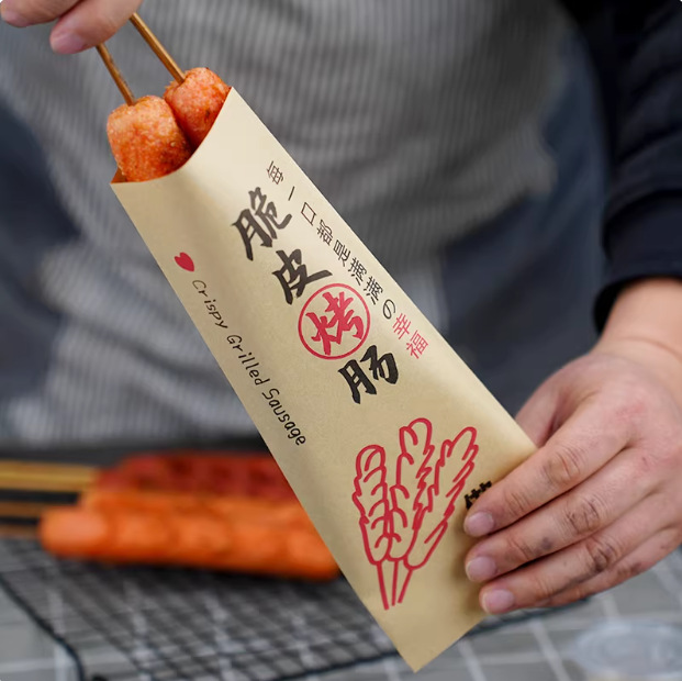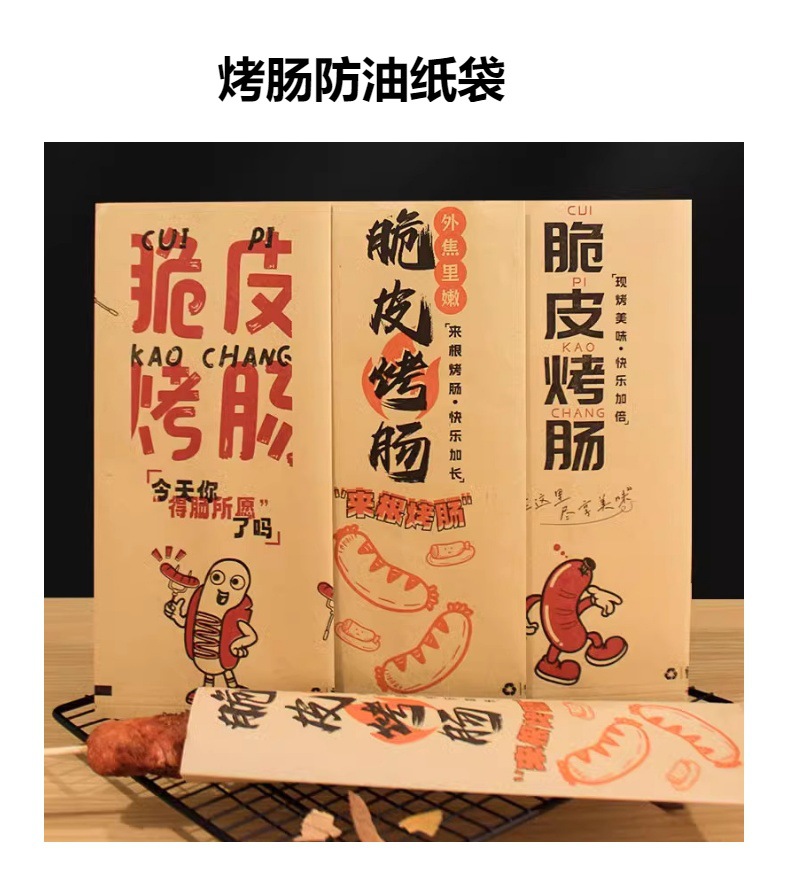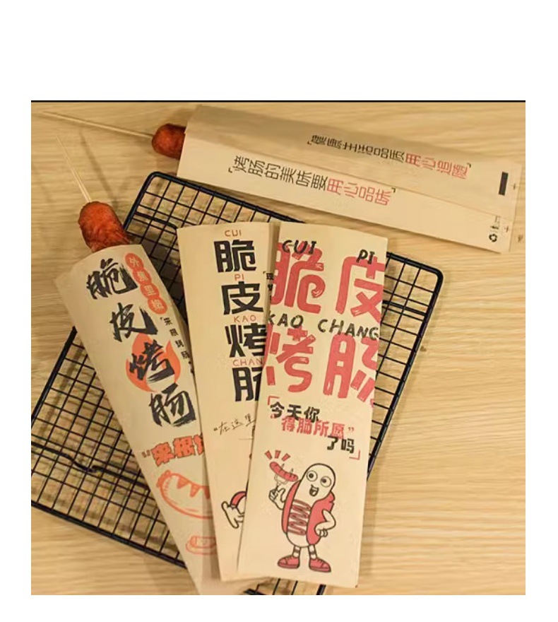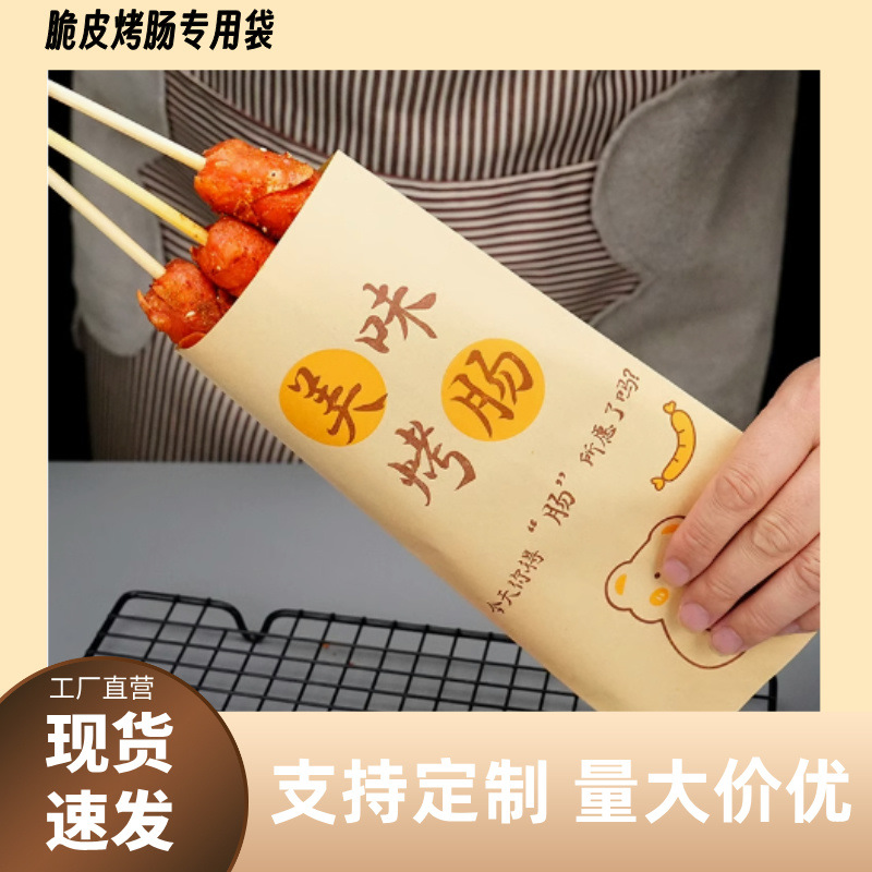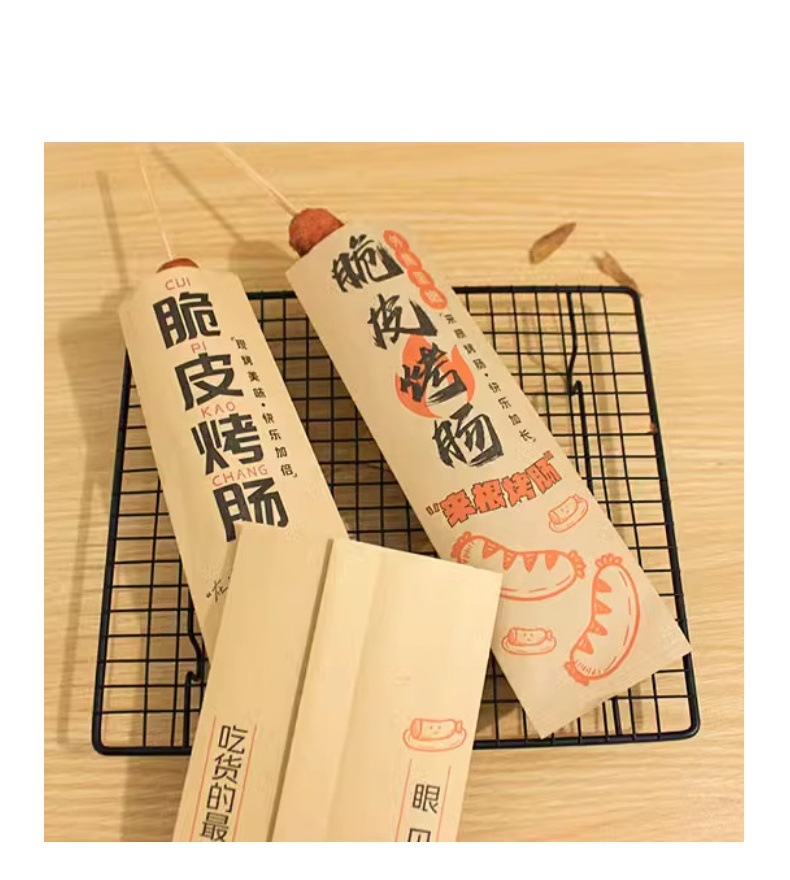ソーセージ耐油紙袋クラフトコーティング紙デンプンソーセージ串バーベキュー麩食品テイクアウト包装カスタマイズ