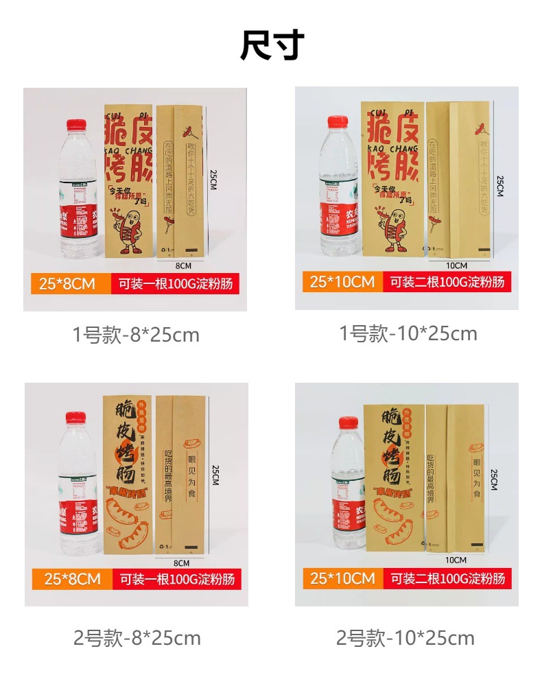 カリカリ焼き腸、粉腸、耐油包装袋、粉腸ホットドッグ、ハム腸、チーズ腸、牛皮紙袋、カスタムメイド