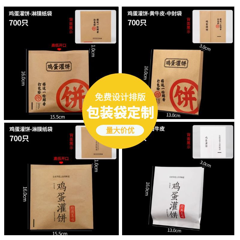卵灌餅紙袋オーブン卵灌餅防油袋淋膜クラフト紙の出前包装食品袋はカスタマイズできる
