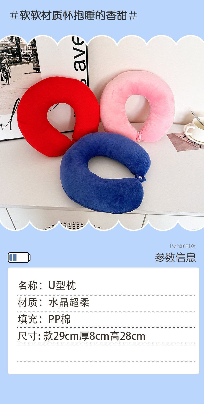 哇噢定制PP棉u型枕水晶绒护颈枕午睡礼品飞机坐车旅行u型枕头批发