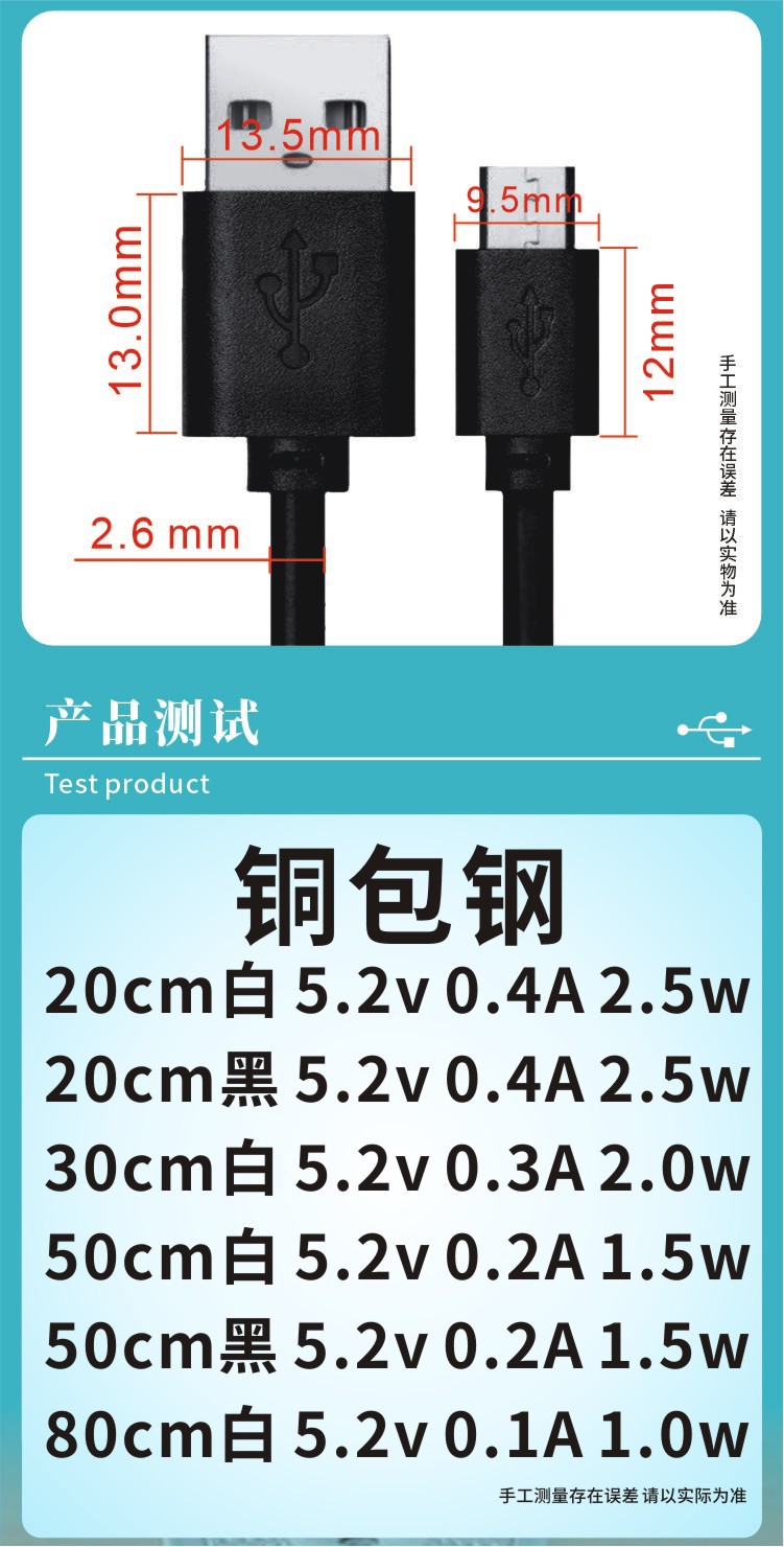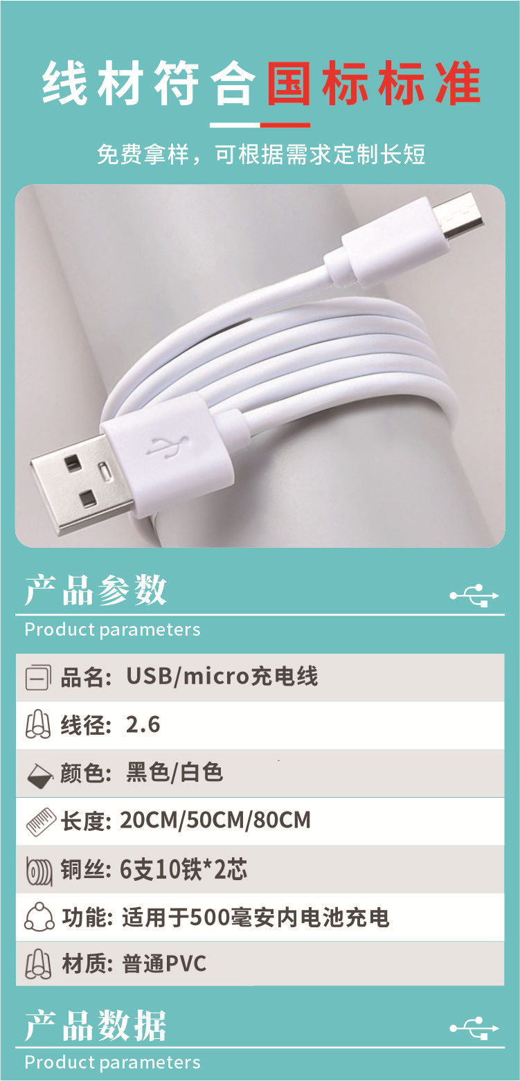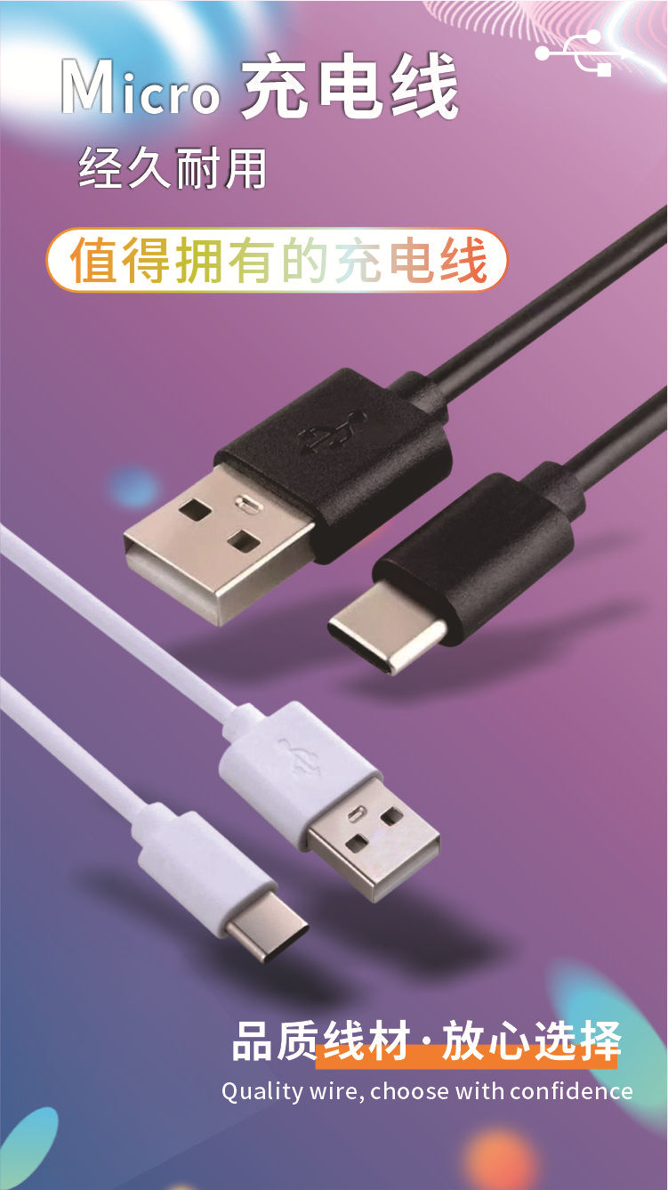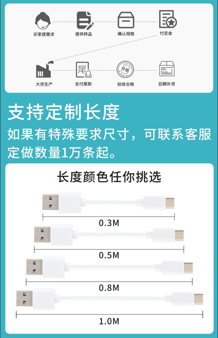 工厂源头USB充电线Type-c补光仪蓝牙耳机加湿器配机线20 30 50 80