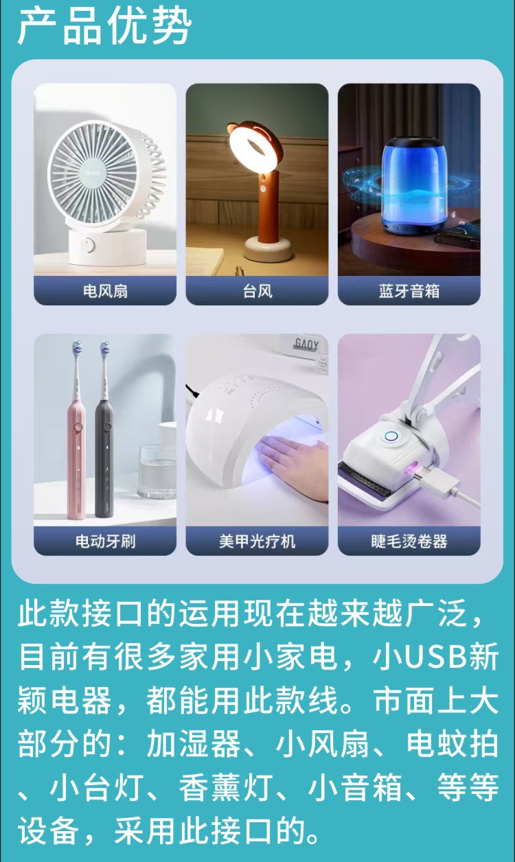 デジタルドラマラインソース工場 Type-c 充電ケーブル小型ファン美容器具マニキュアランプ Bluetooth ヘッドセットマシンライン