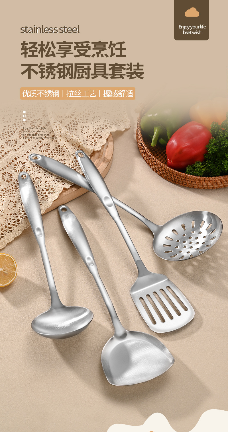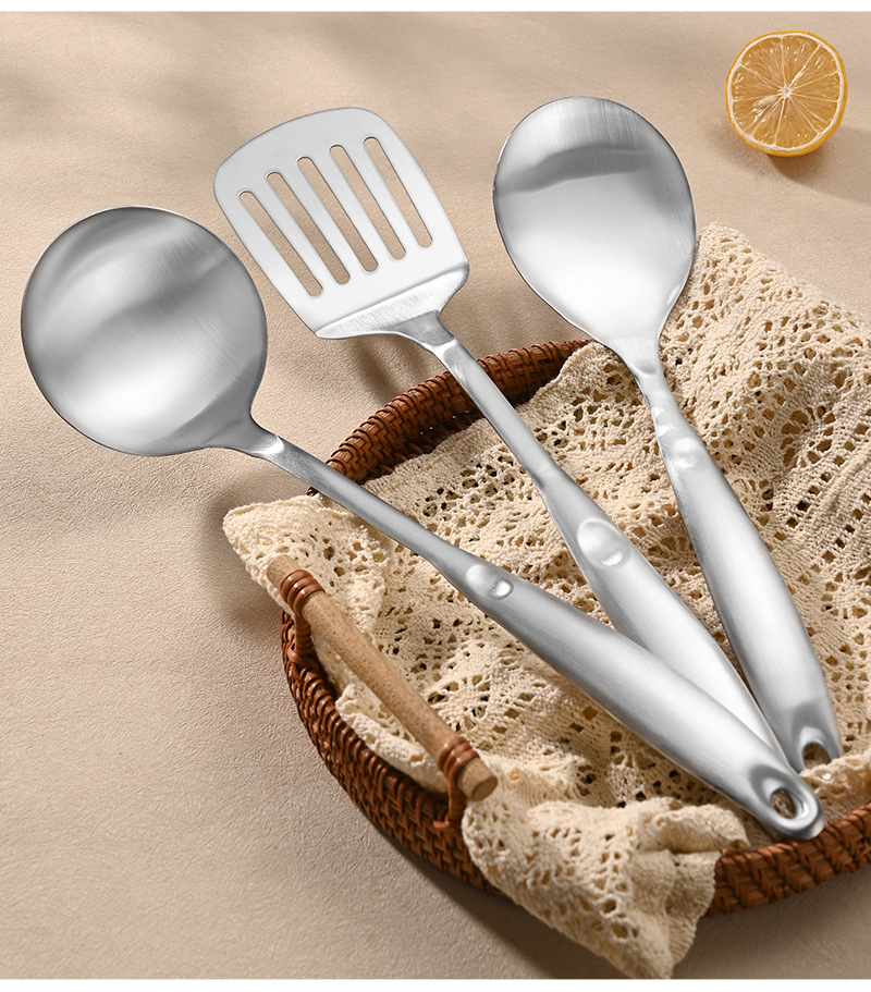 201三センチ木柄ステンレス鍋シャベルスプーン台所用品四点セットシャベル卸売りスプーン調理スプーン