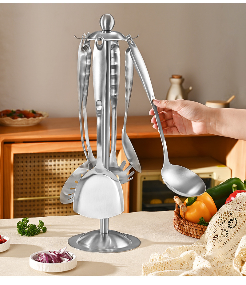 メーカー201ステンレス製鍋つかみ、耐久性があり、吊り下げ可能なザル、調理器具セット、キッチン調理用実用的なスパチュラ