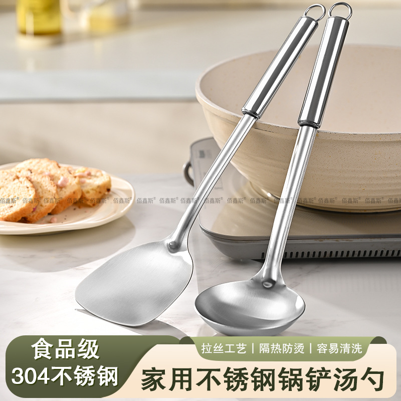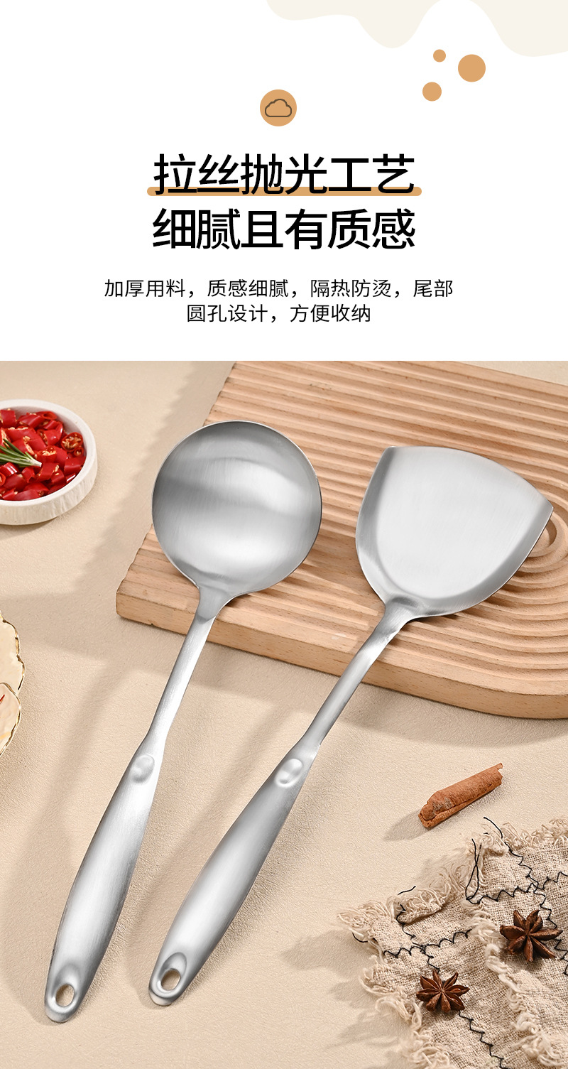 不锈钢锅铲创意双线空心柄加厚耐用烹饪铲勺厨具套装汤勺漏勺煎铲