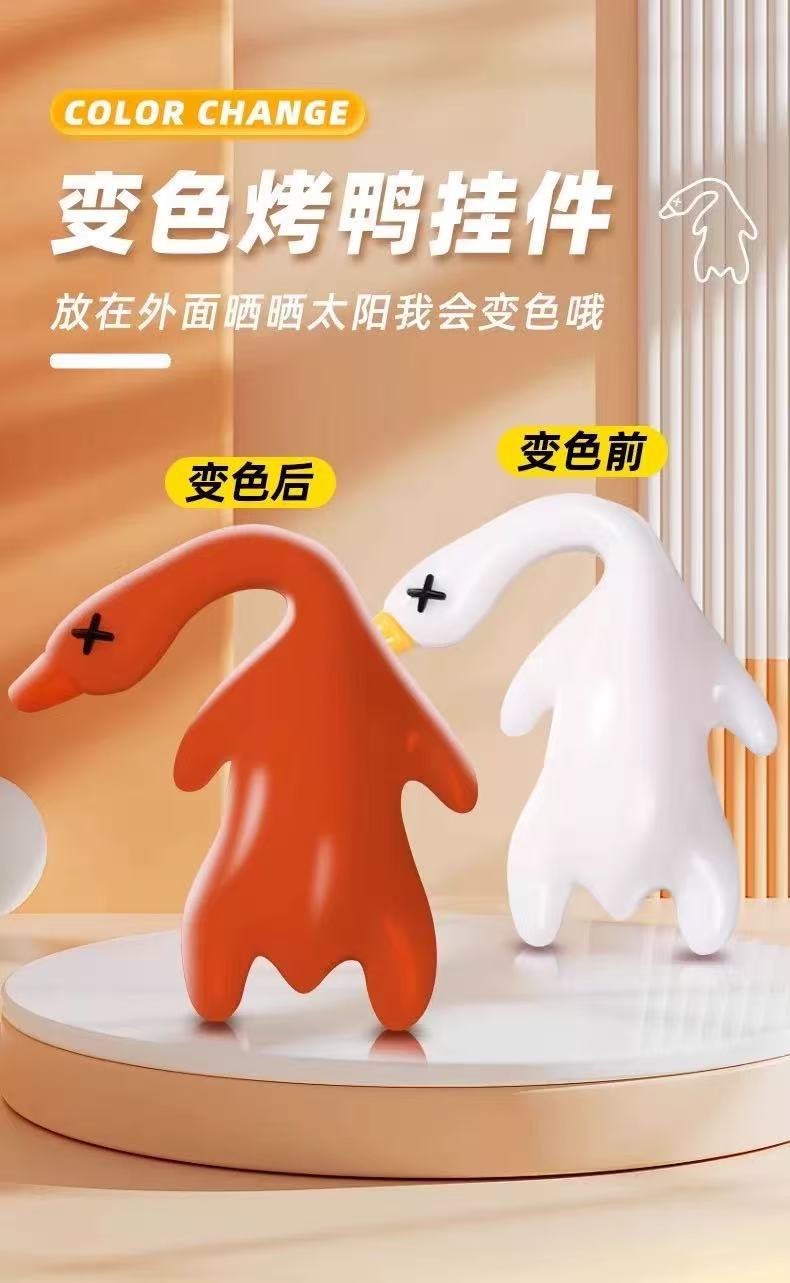变色烤鸭挂件玩具有趣恶搞趣味烧鸭挂件黑科技车挂搞怪感温变色