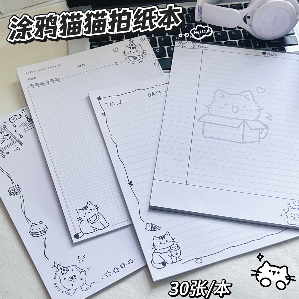 涂鸦小猫笔记本拍纸本横线本文具可撕便签本学生草稿本子B5加厚