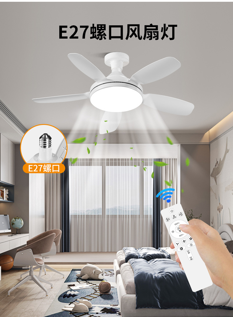 国境を越えた新型六葉E27ねじ口ファンランプ寝室リビングルーム吊り扇ランプ超大型風力静音ファンランプ