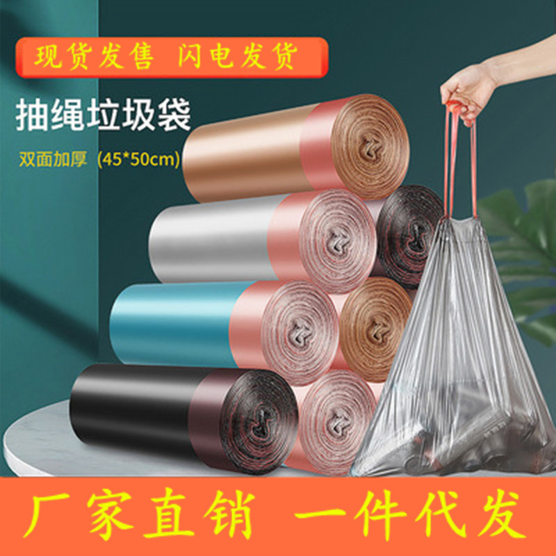 ゴミ袋巾着式家庭用キッチン厚手中サイズゴミ袋卸手提げ自动収口カラーブラック
