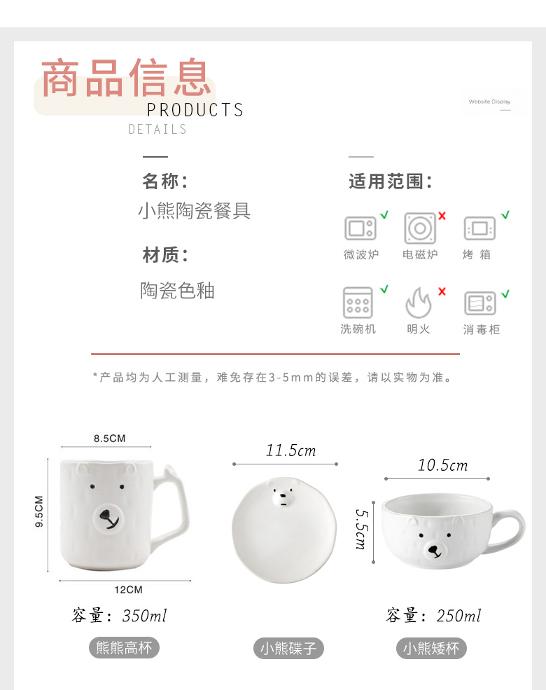 かわいい熊陶磁器食器韓国版ins朝食家庭用亜光麺碗洋食皿酸っぱい牛乳マグカップ