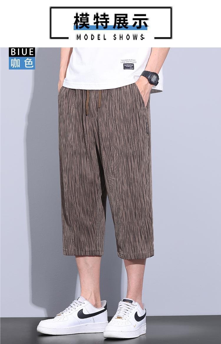 元のメーカーの夏の直筒七分ズボンの男性の氷糸のストライプの半ズボンの薄いタイプの通気性のファッションの格子のカジュアルなズボン