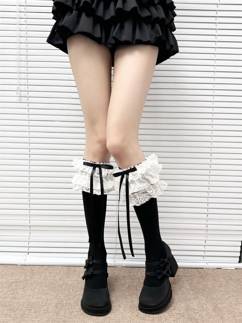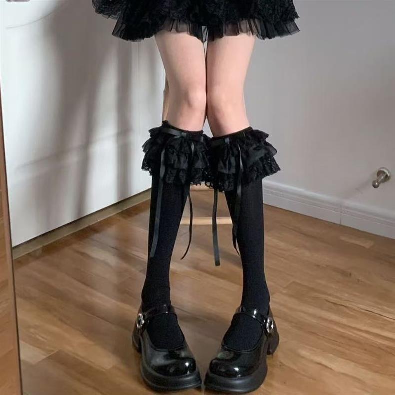 クロスボーダーロリータ多層レース大レースリボンオーバーニーソックス女の子かわいいミッドカーフソックスjk日本製カーフソックス