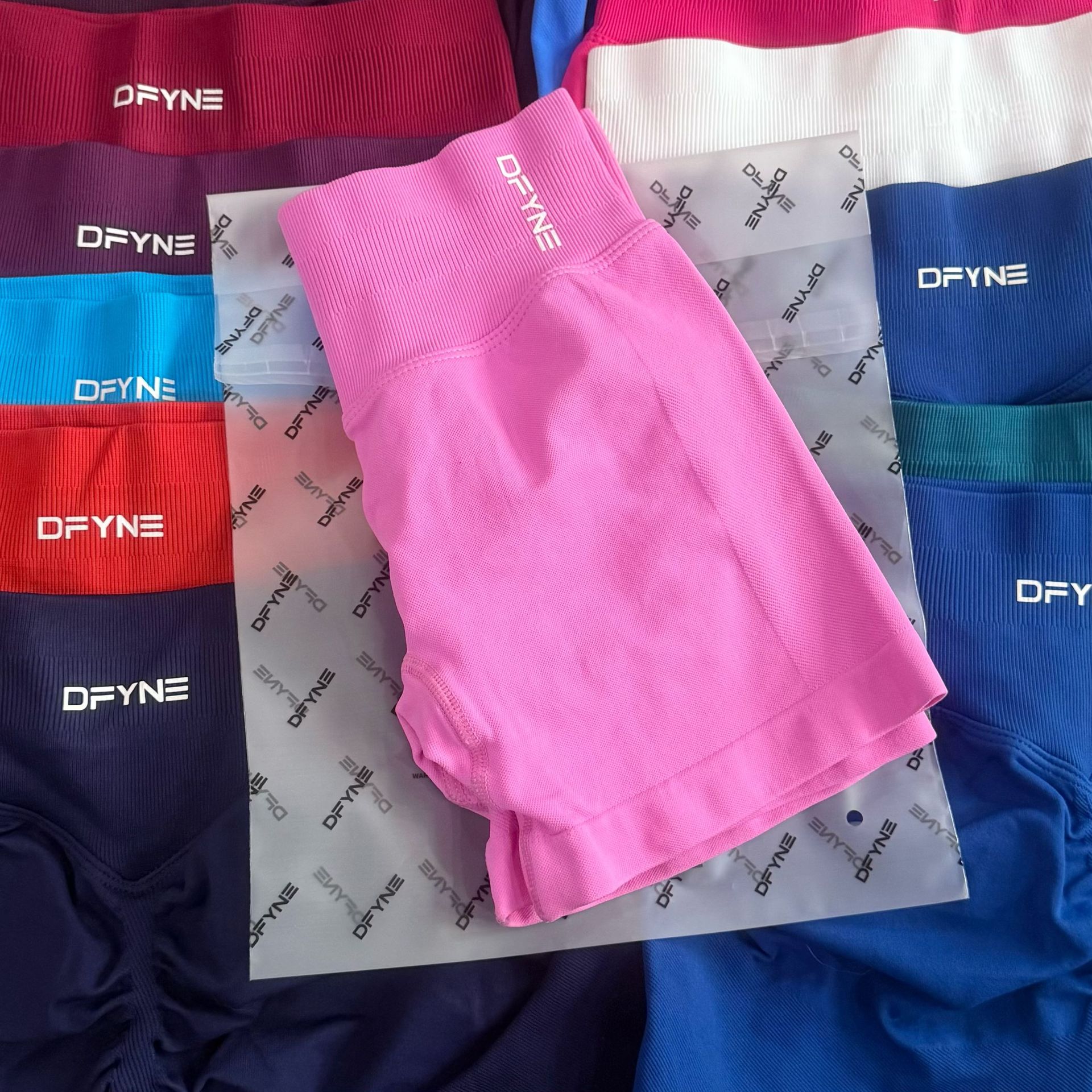 DFYNE 交換用クロスボーダーホットスタイルキャンディーカラー3段ウエストタイトプルシームレス3点スポーツヨガショーツ