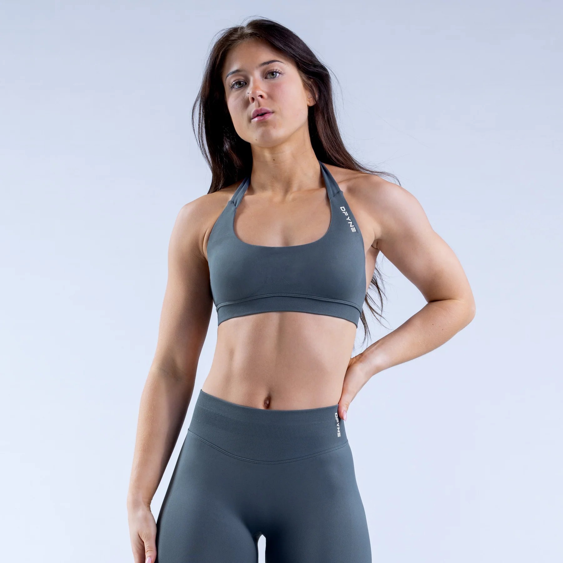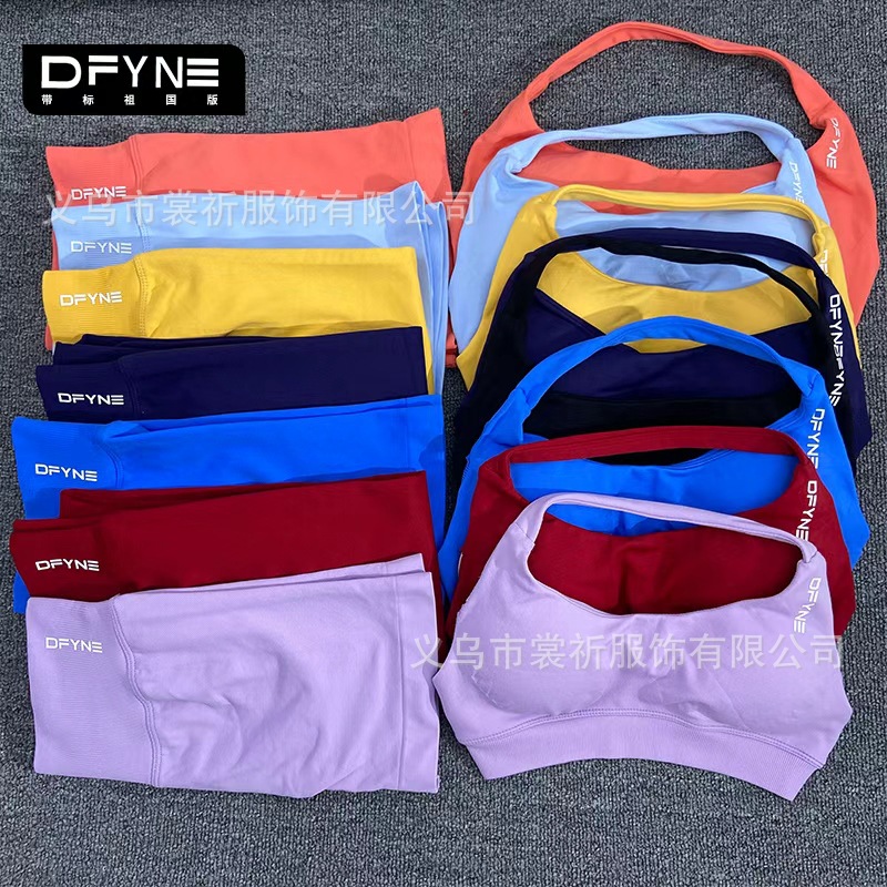 DFYNE欧美无缝露背挂脖运动背心短裤套装女高弹消光锦纶瑜伽文胸