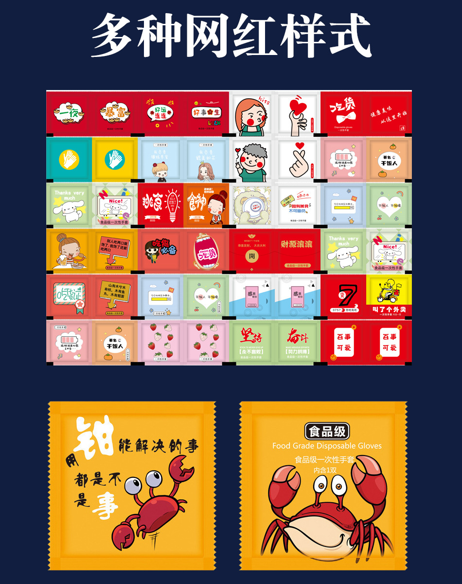 厚い使い捨て手袋独立包装透明食品級飲食フライドチキンの出前バーベキュー用創造性小包装