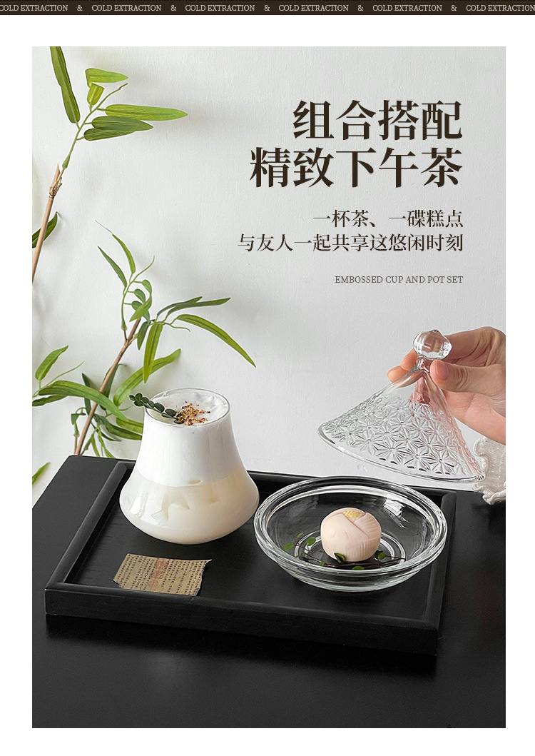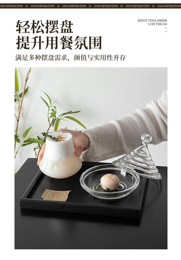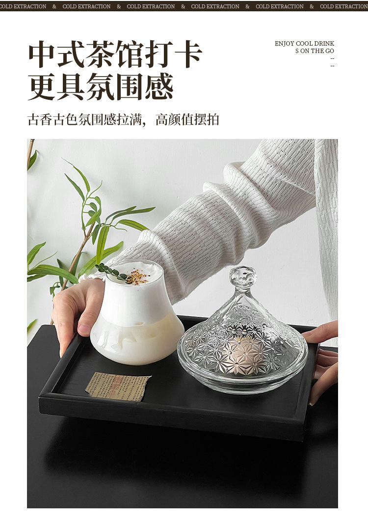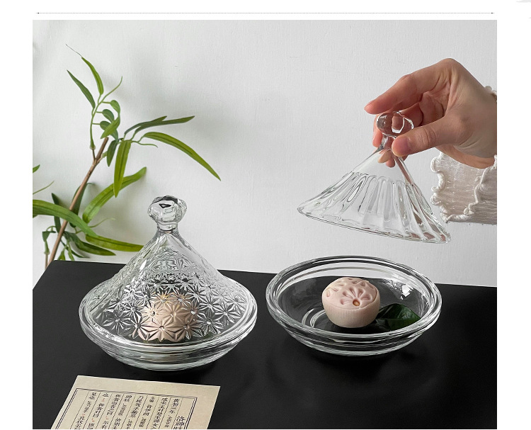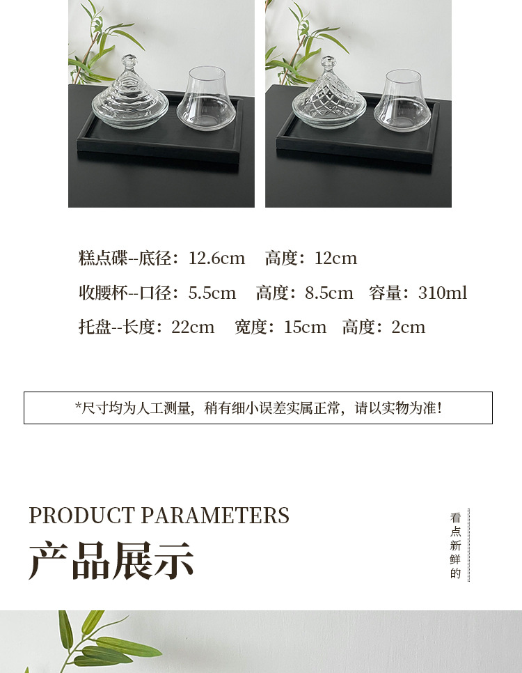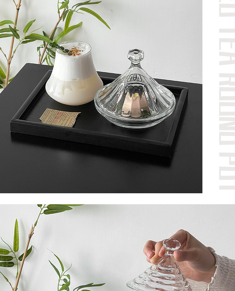 中国式創意蓋付き茶点皿透明ガラス円錐デザート杯午後茶軽食果物菓子ガラス杯