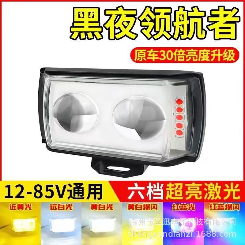 厂家直销电动车跨境热销摩托车LED铺路大灯双透镜炫彩高亮Led3面