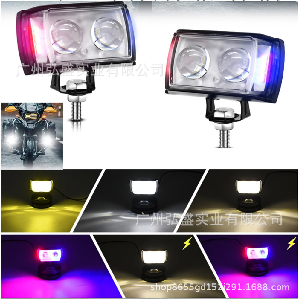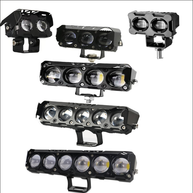 オートバイスポットライト三眼四眼五眼ヘッドライトLED黄白遠近光防水外付け電気自動車前照灯