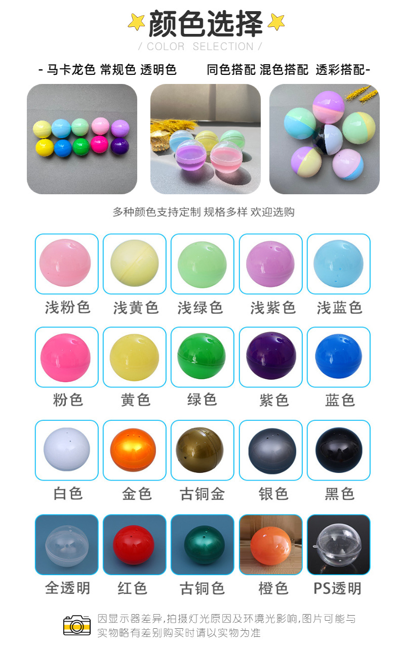 32mm45mm50mm70mm开口扭蛋球扭蛋壳彩色空蛋壳抽奖球摸奖圆形彩蛋