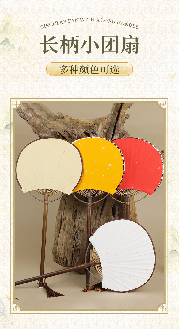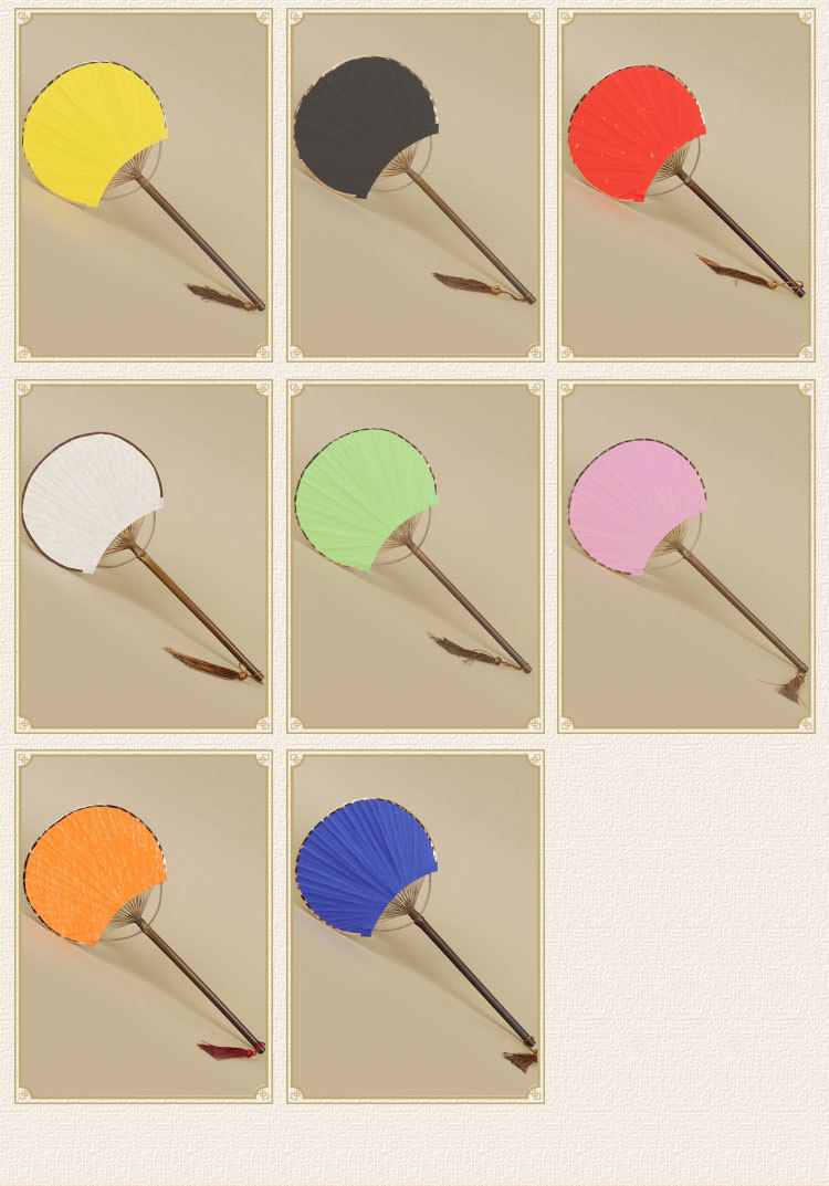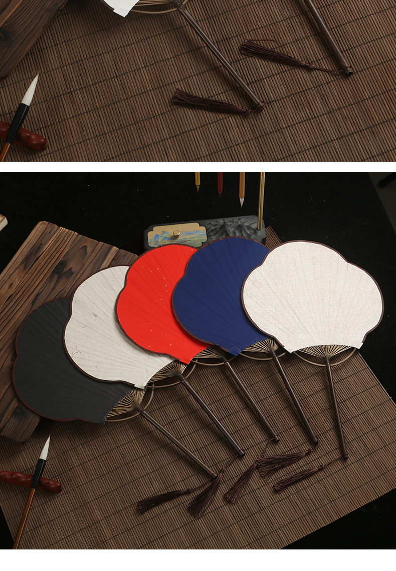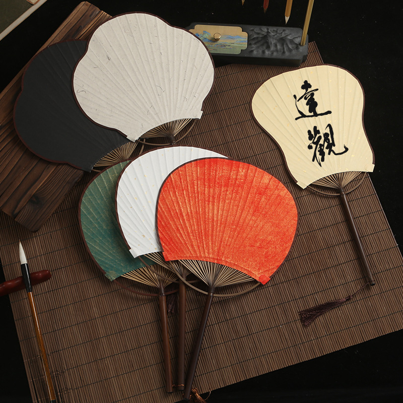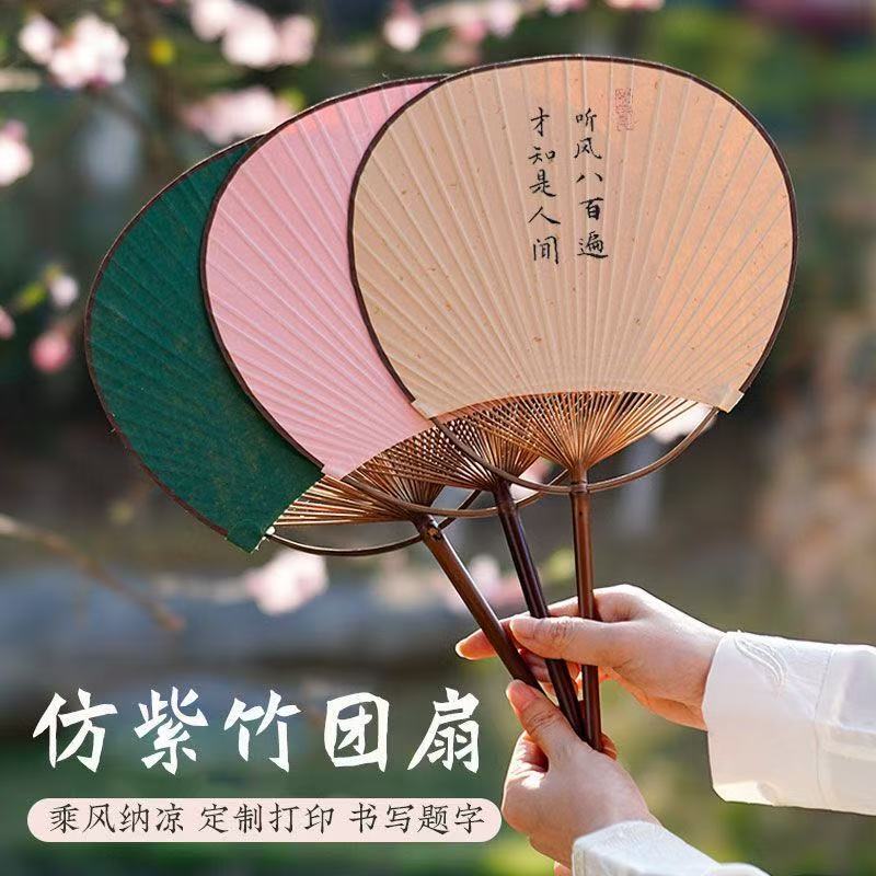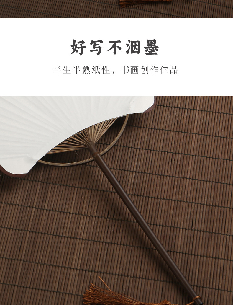 空白团扇中国风古风汉服女紫竹长柄流苏DIY手绘宣纸扇子古典宫扇