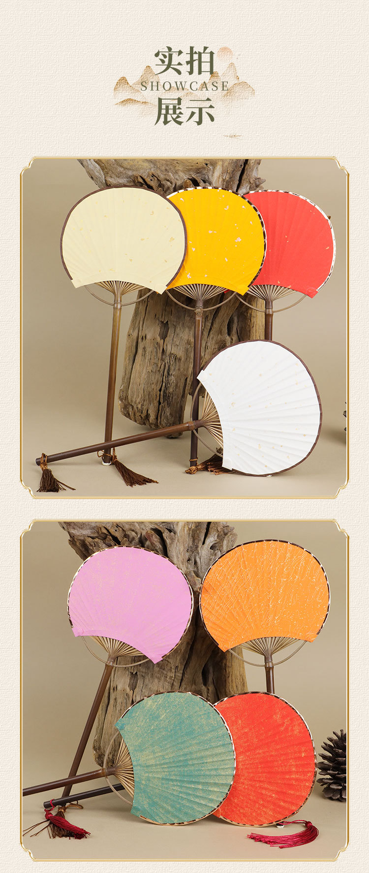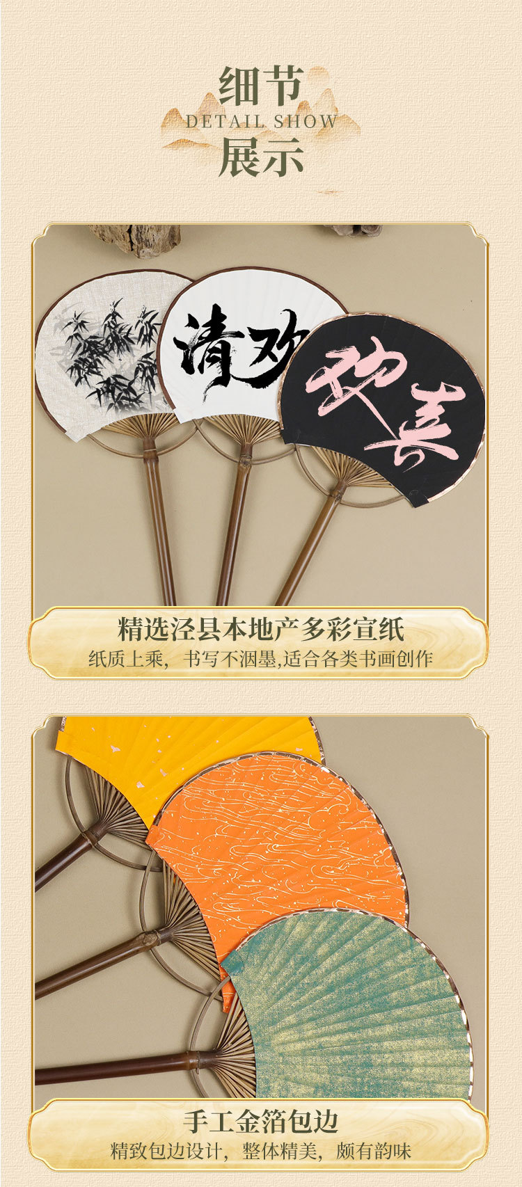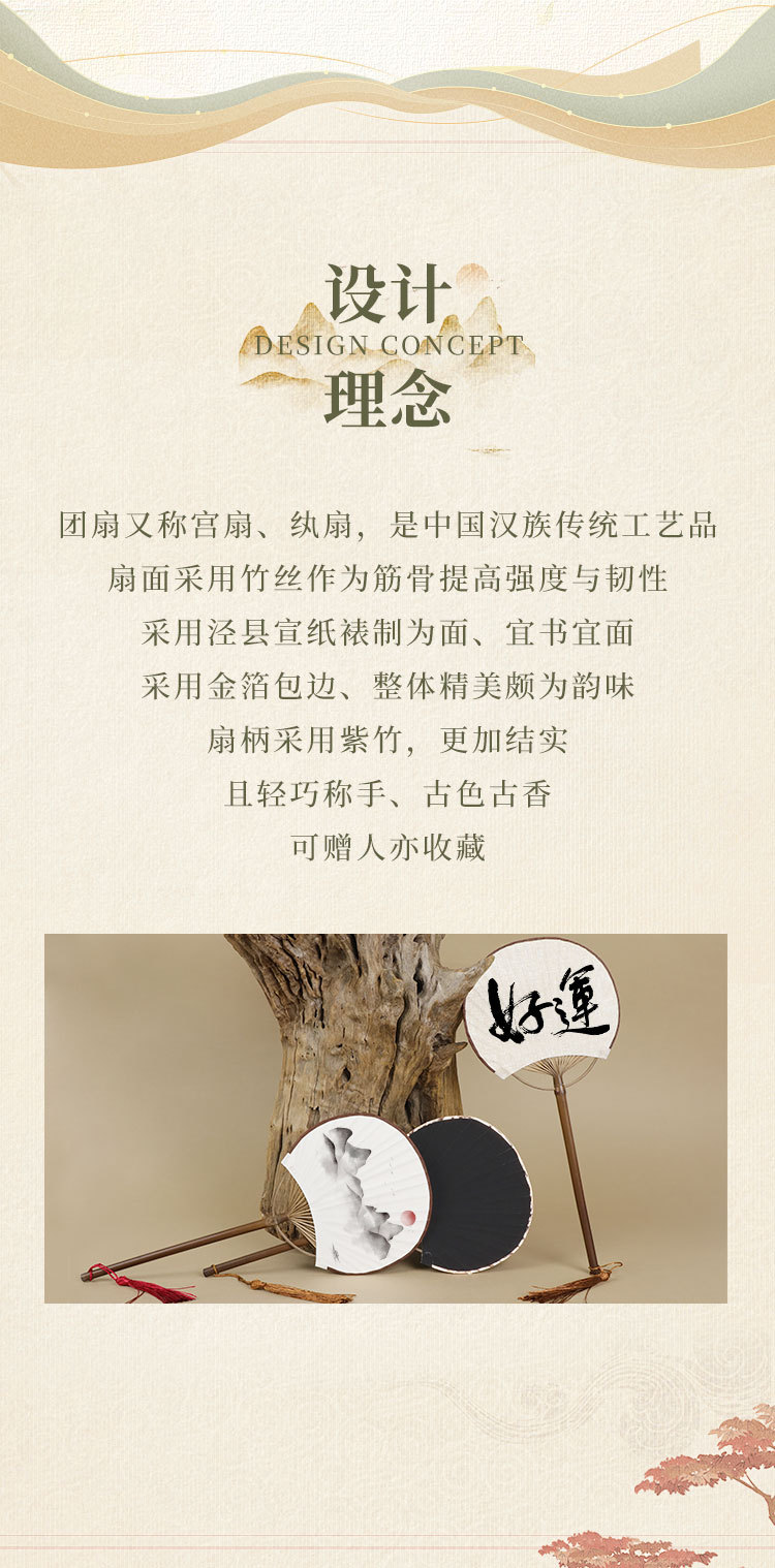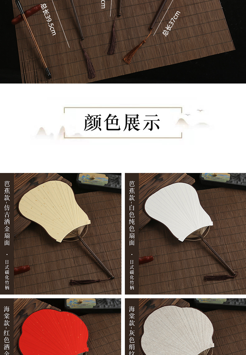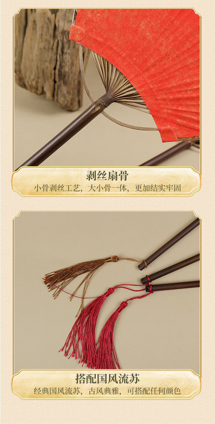 空白团扇中国风古风汉服女紫竹长柄流苏DIY手绘宣纸扇子古典宫扇