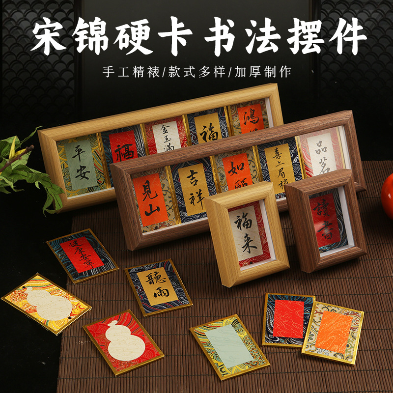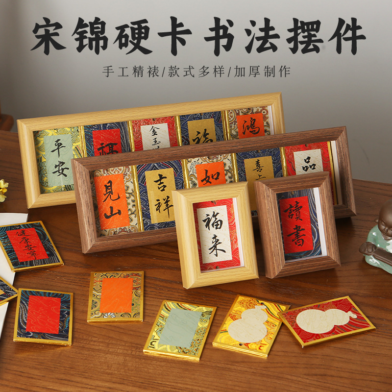 宋錦のミニハードカードの書道の置物の宣紙の紙のデスクトップの装飾のフォトフレームの台は書道を描いて台の文を飾って手書きを作ります。