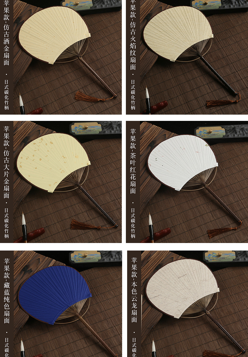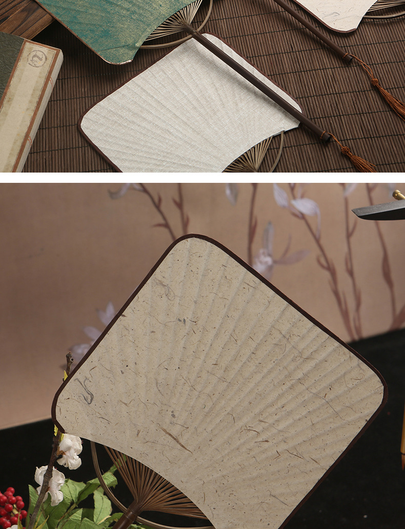 空白のうちわ手描き diy ライスペーパーファン紙ファン古代スタイル紫竹細断炭化長柄宮殿ファン漢服ファン