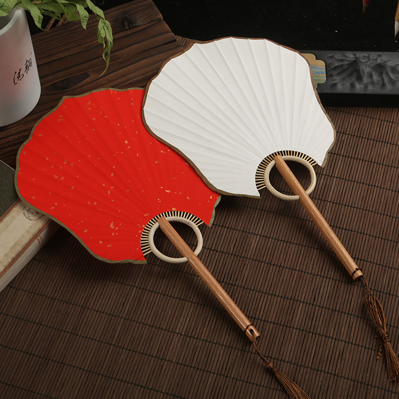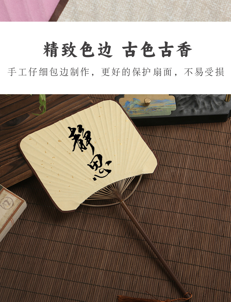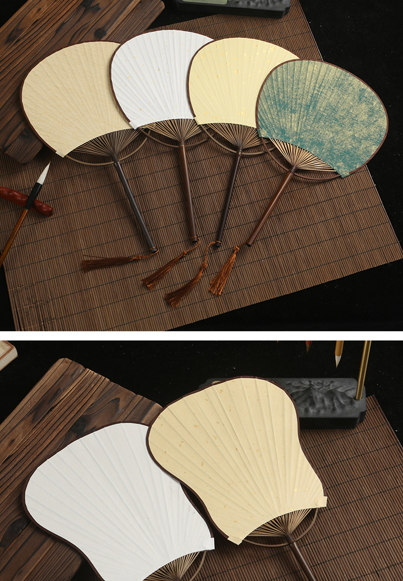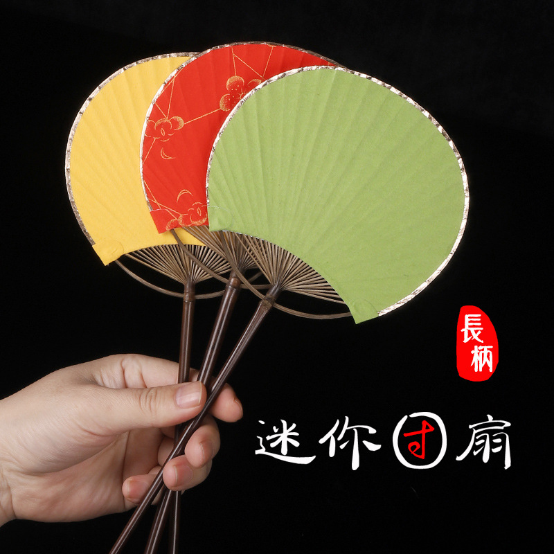 小団扇空白ミニ扇子手描きdiy書道絵画扇子宣伝紙扇面古風紫竹長柄宮扇