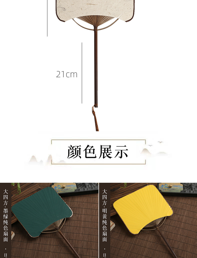 ミニ団扇空白手描きdiy宣伝紙扇子緑扇面古風紫竹長柄宮扇方蒲扇