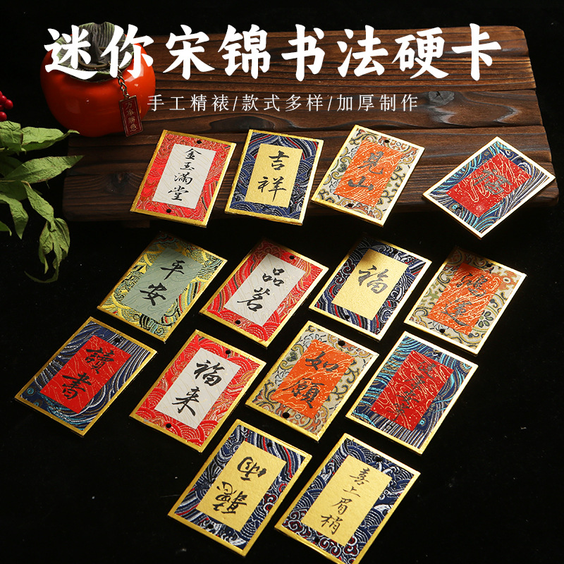 宋錦ハードカードペンダント国風宣紙ブックマークカード福カード手書き書道文創diyプレゼント車載ペンダント