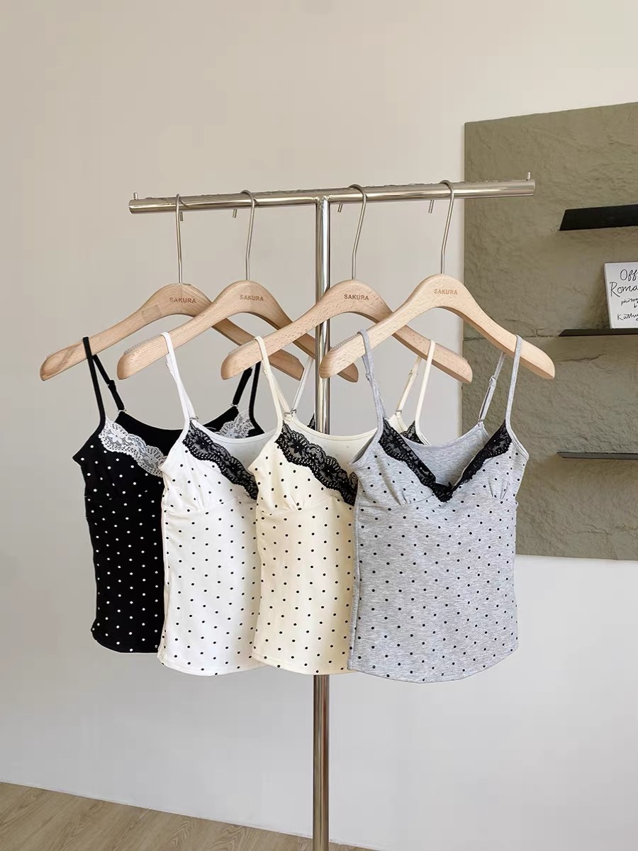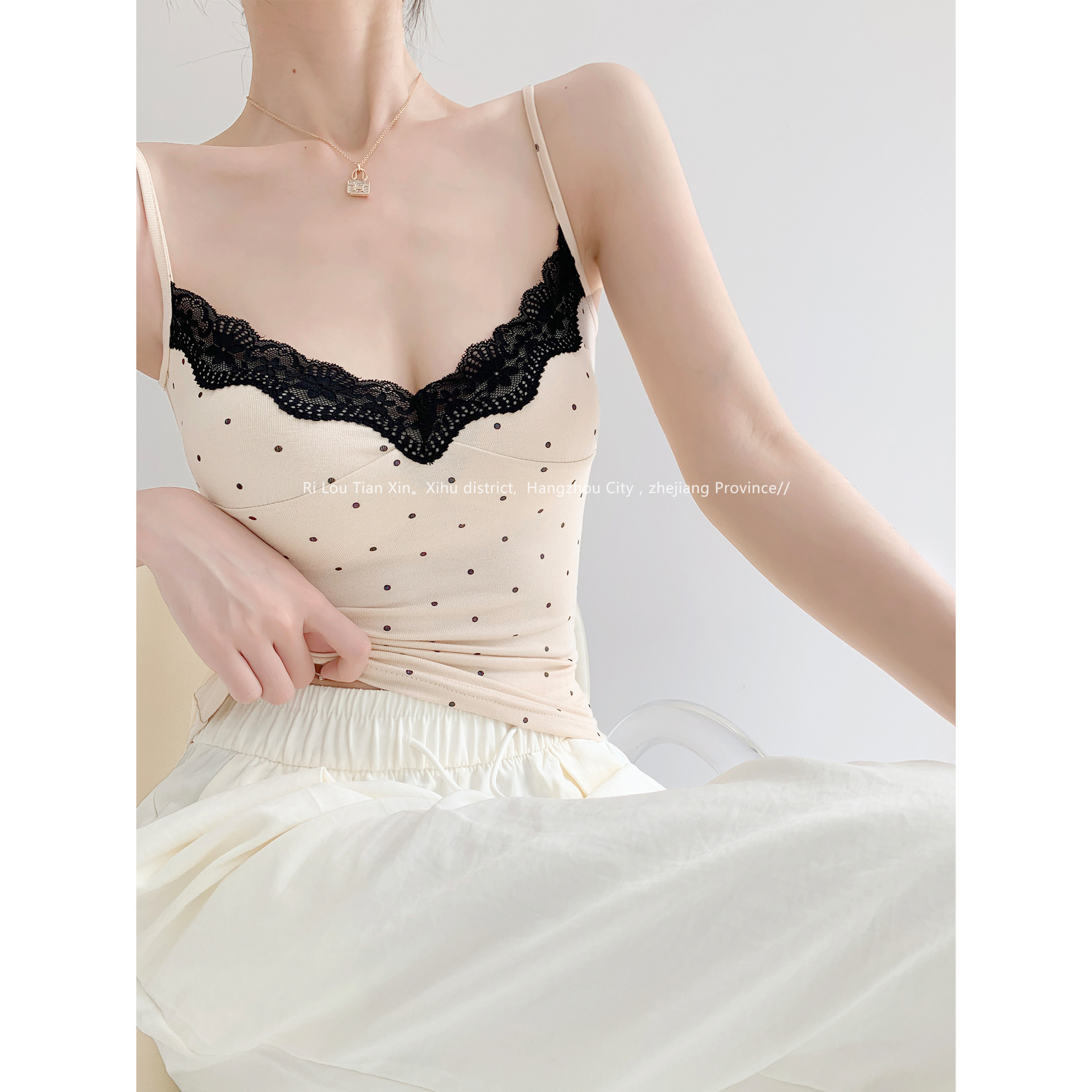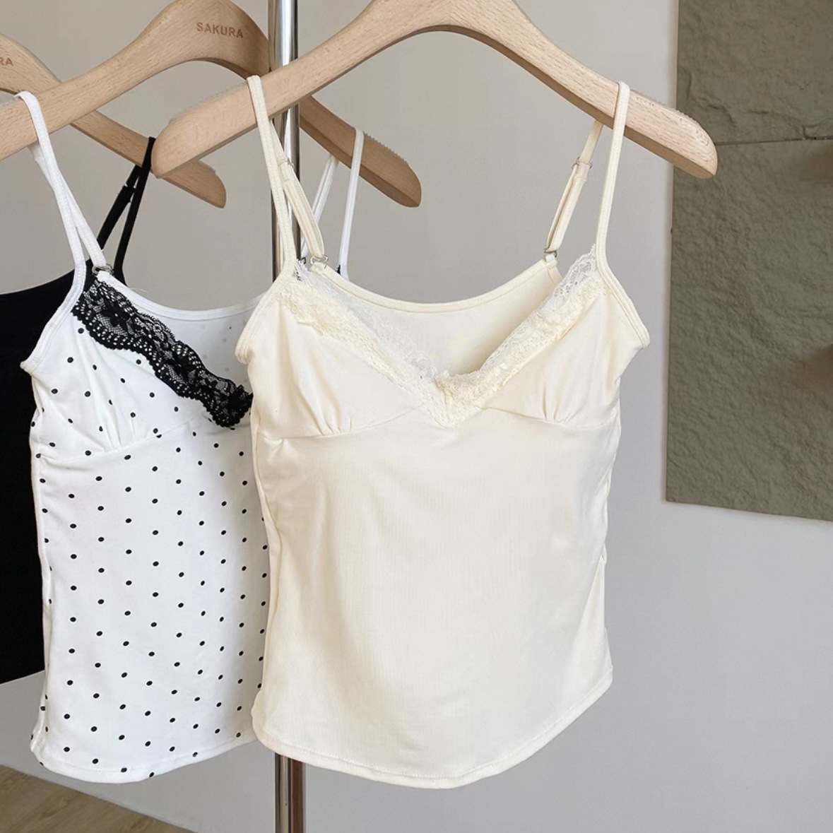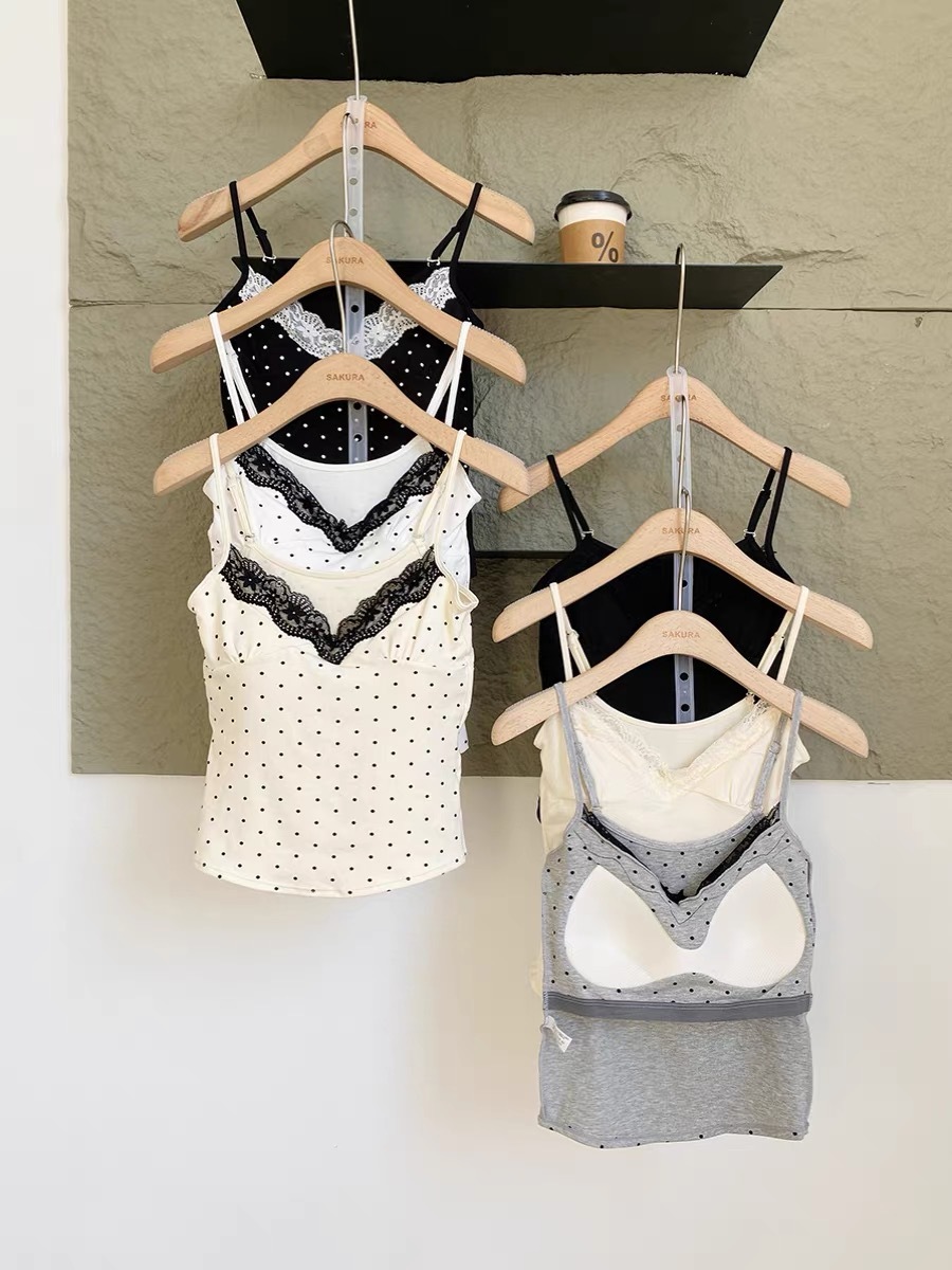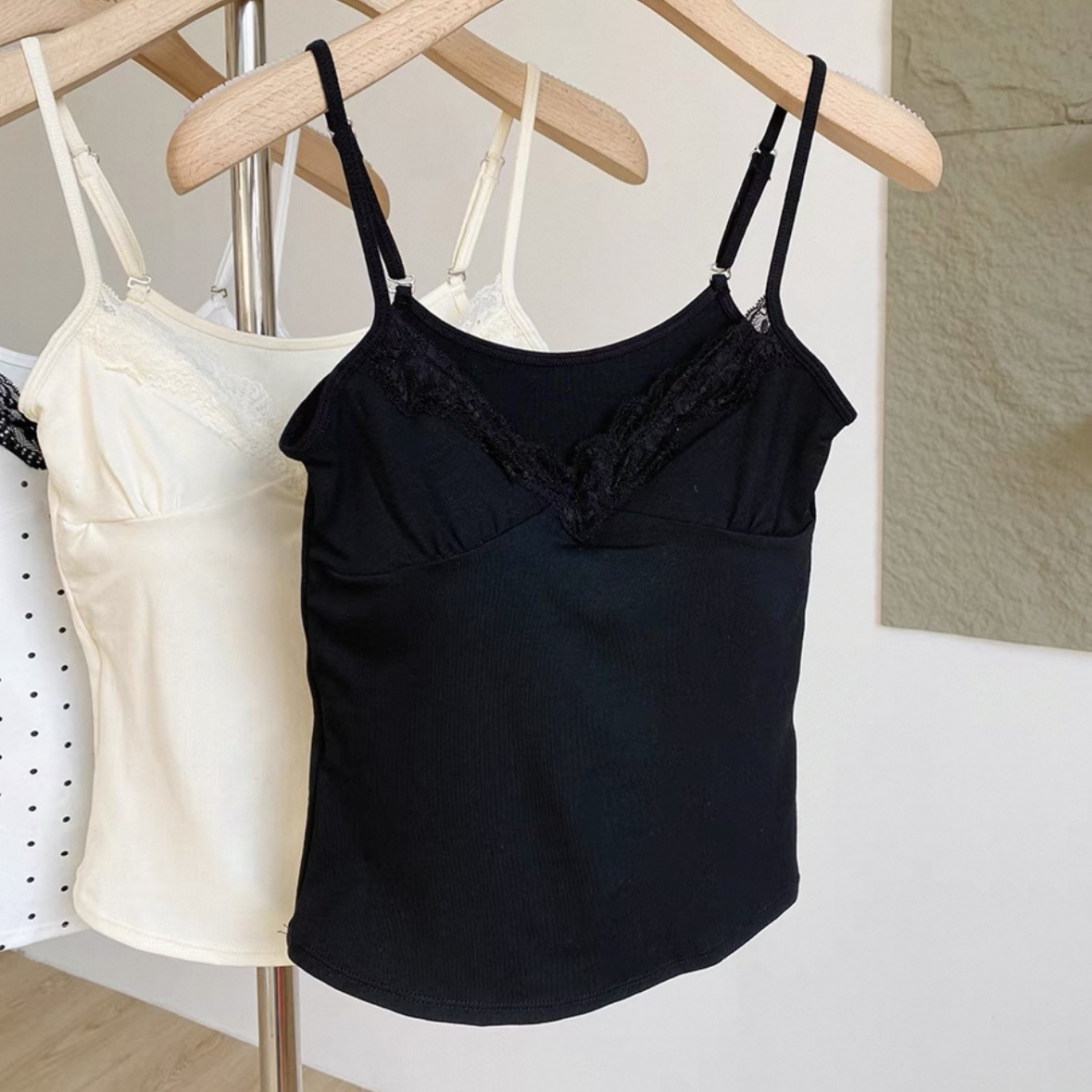 純欲風の中にレースの花の縁に胸のパッドのキャミソールのベストをつけます。