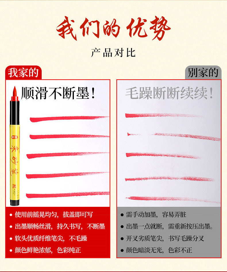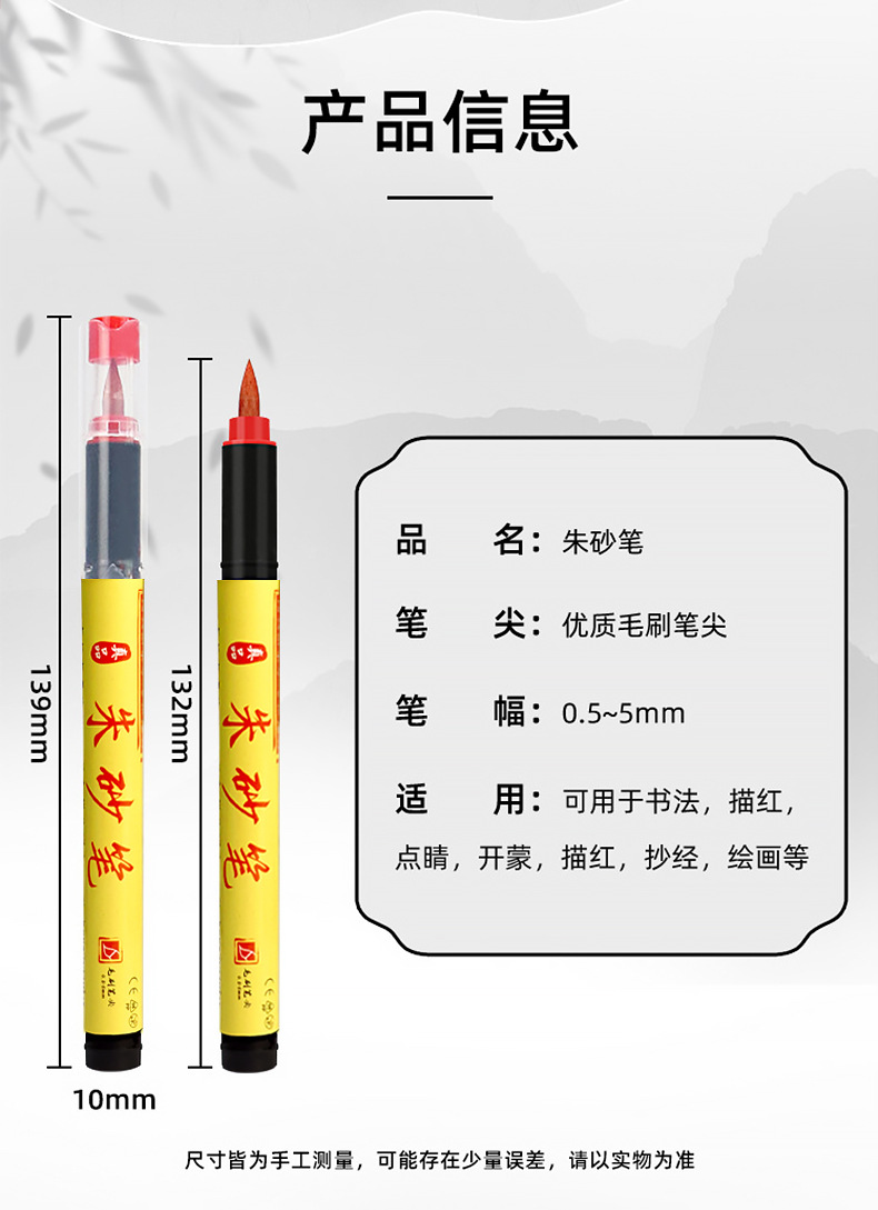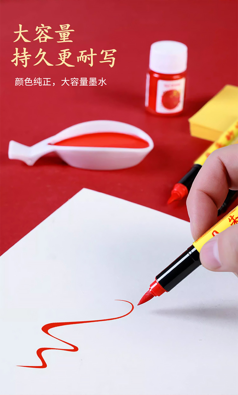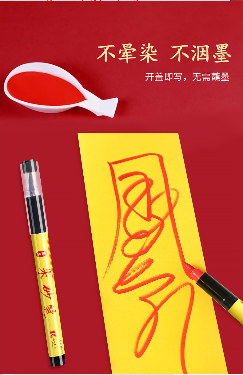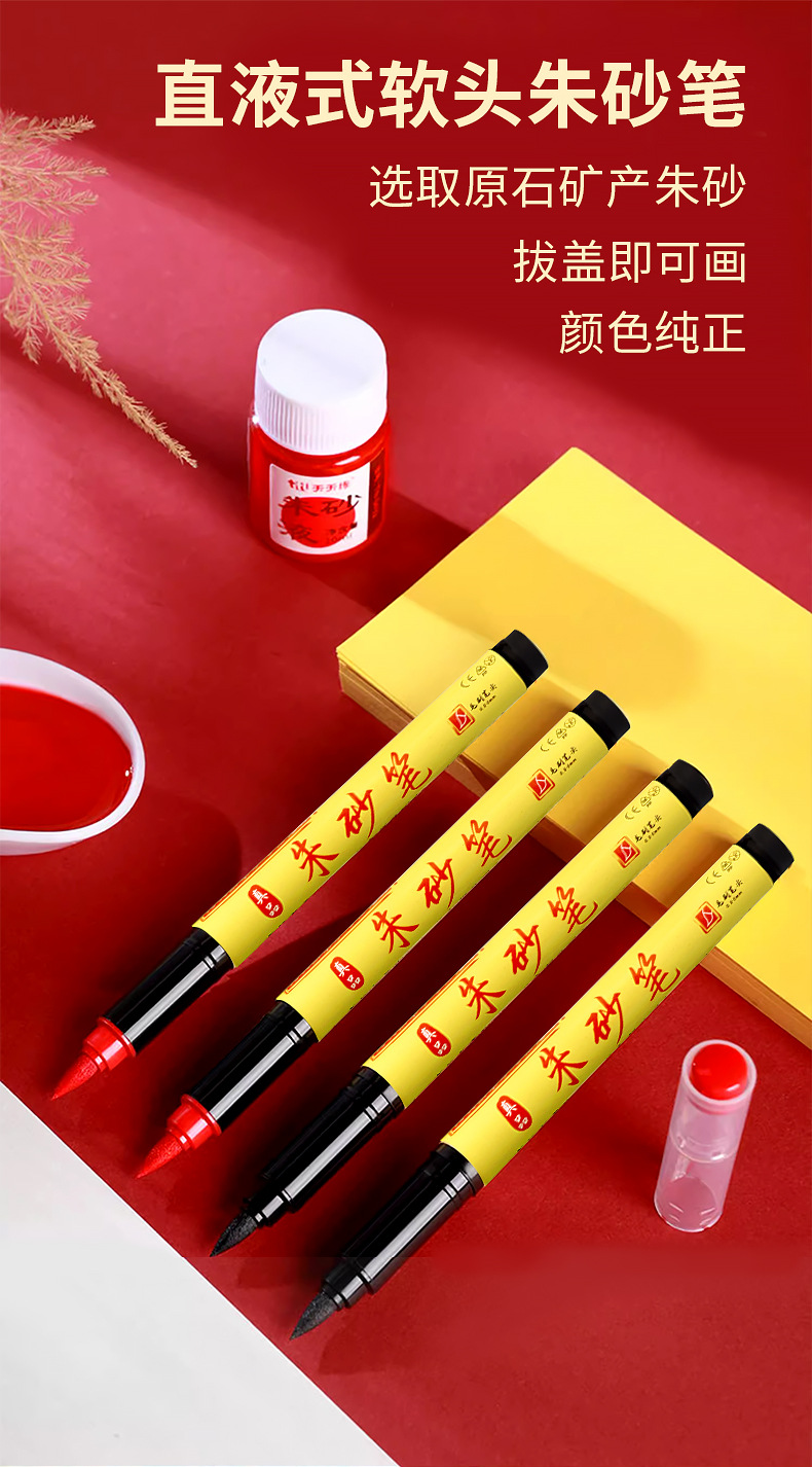 朱砂笔符画含有朱砂液练字书法抄经描红免蘸墨软头毛笔启蒙点睛笔